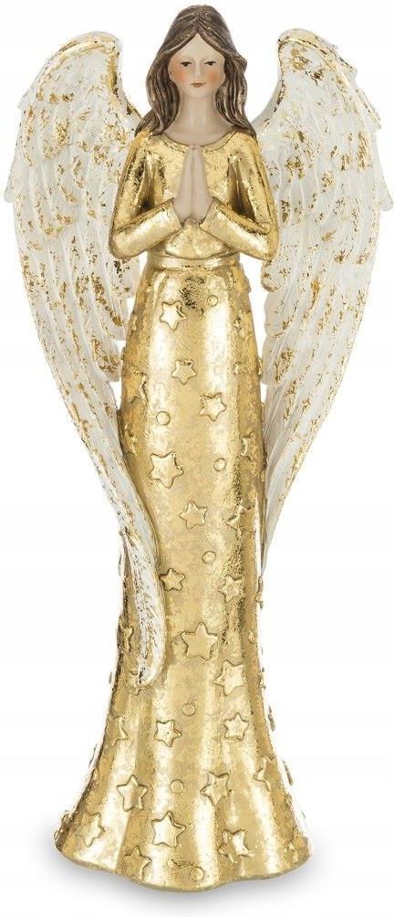 Figurka Anioł złoty 37,5 cm Anioły są symbolem miłości, troski, bezpieczeństwa. Anioł jako uniwersalny pasuje na wszystkie uroczystości np. ślub, komunie, chrzest, imieniny, urodziny. Wspaniały upominek dla bliskiej osoby. Idealnie sprawdzi się jako dekoracja. Figurkę wykonano z masy poliresingowej …