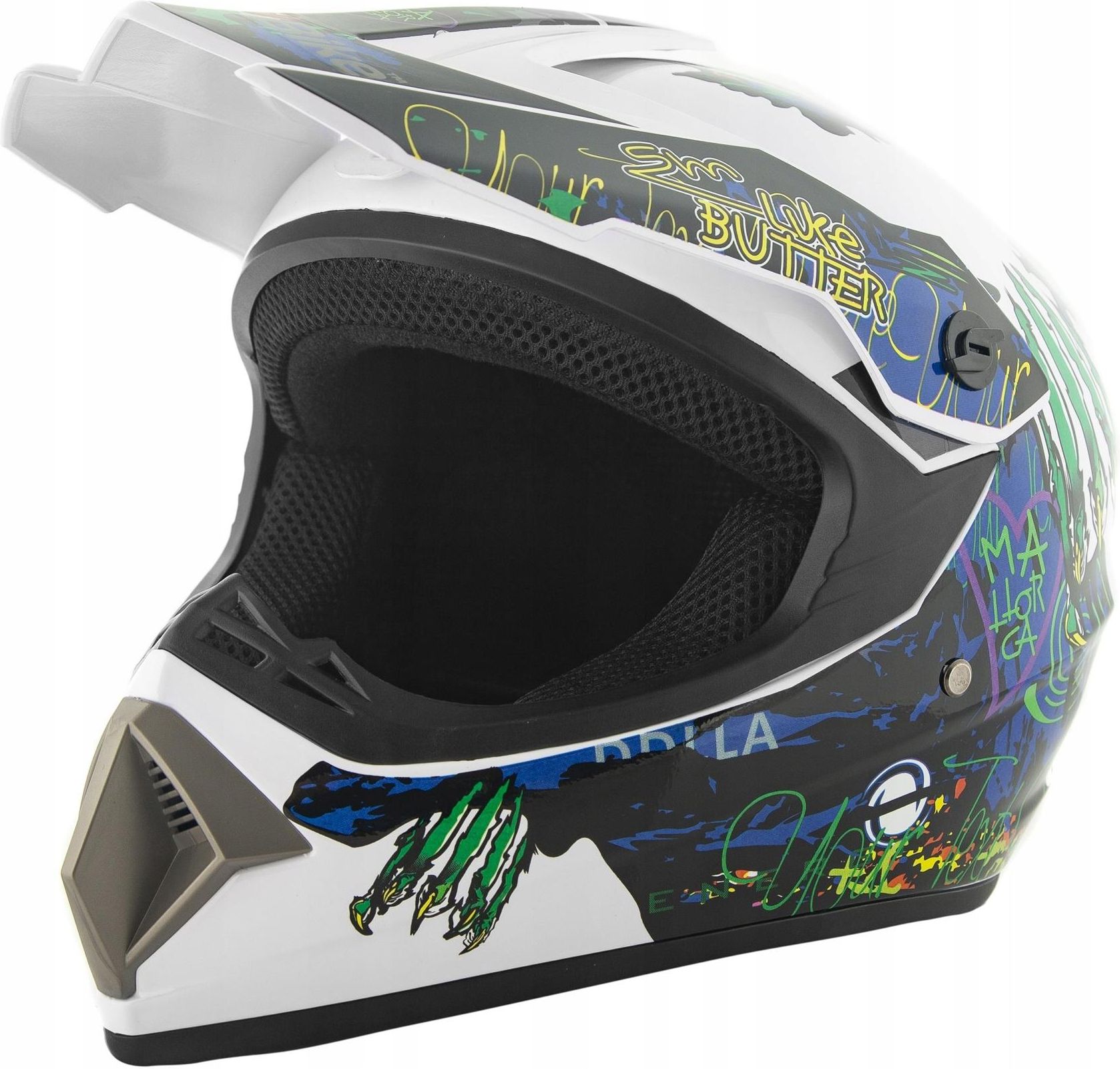 KASK NA CROSS ENDURO QUAD ATV BIAŁY MONSTER XS KASK CROSSOWY NA ENDURO, QUAD Dane techniczne: Model kasku: 905 Producent: City-Bike Certyfikat CE: Tak Kolor: Biały Monster Rozmiar: XS (53-54cm) Waga: ok. 1000g Ilość: 1 kask Nasz kask Crossowy City-Bike jest przeznaczony do quadów, crossów itp. Wygodne wnętrze kasku z wyściółką posiada wyjmowane wkładki boczne przystosowane do prania Kask posiada regulowany daszek Wnętrze kasku jest wykonane z materiału antyalergicznego SKORUPA Lakierowana powłoka odporna na promieniowanie UV Produkt posiada certyfikat CE WLOTY POWIETRZA Zapewniają dobrą wentylację ZABEZPIECZENIE Regulowany pasek pod brodą Szybki system zapięcia paska, gwarantujący odpowiednie trzymanie kasku na głowie Aby prawidłowo dobrać rozmiar kasku poniżej przedstawiamy schemat pomiaru rozmiaru: Obwód głowy mierzymy około 1 cm nad brwiami i 2 cm nad uszami. UWAGA! Na tej aukcji kupujesz kask w rozmiarze: XS (53-54cm) Dodatkowo do zamówienia zupełnie GRATIS otrzymasz: oryginalny pokrowiec City Bike na kask! oryginalne pudełko z naszym logiem. Na tej aukcji kupujesz kask w rozmiarze XS w kolorze białym z grafiką.