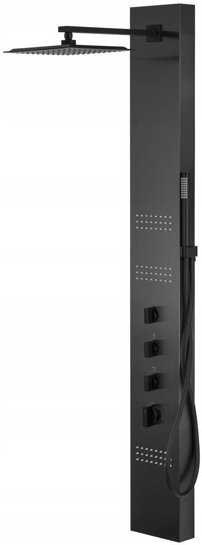 Panel prysznicowy Corsan NEO Mieszacz Czarna stal Deszczownica LED Kolor panelu to głęboka czerń, która dodaje mu nowoczesności i stylu. Wykończenie panelu jest również czarne, co nadaje mu elegancki i nowoczesny wygląd. Wykonany z wysokiej jakości stali szlachetnej, panel jest solidny i trwały. Jego powierzchnia jest szczotkowana, co dodaje mu wyrafinowanego wyglądu. Zintegrowana deszczownica pozwala na regulację strumienia wody, co umożliwia dostosowanie jej do indywidualnych preferencji użytkownika. Dodatkowo, panel wyposażony jest w trzy dysze hydromasażu, zapewniając przyjemne doznania podczas kąpieli. Oświetlenie LED nadaje panelowi eleganckiego blasku, a zasilane jest przez hydrogenerator. Uchwyt prysznicowy w kolorze czarnym, wykonany z mosiądzu, doskonale komponuje się z resztą panelu. Panel wyposażony jest w trójdrożną baterię, co zapewnia wygodę użytkowania, a system oszczędności Eco Saving minimalizuje zużycie wody i energii. Pokrętła oraz słuchawka prysznicowa w kolorze czarnym są wygodne w obsłudze i dodają elegancji całej kompozycji. Wąż prysznicowy o długości 150 cm, wykonany z wysokiej jakości stali, jest solidny i trwały. Cechy produktu Producent: Corsan Rozmiar: uniwersalny EAN: 5902767648219 Kolor: Czarny Typ deszczownicy: Zintegrowana Regulacja deszczownicy: Tak Technologia zabezpieczenie dysz przed osadem z kamienia: Anti Calc Typ uchwytu: Zamontowany w panelu, przyłącze narożne. Kolor uchwytu: Czarny Powierzchnia uchwytu: Półmatowa Materiał uchwytu: Stal, Mosiądz Typ głowicy funkcyjnej: Trójdrożna Materiał baterii: Stal, Mosiądz Zabezpieczenie powierzchni: Anti Wipe Typ głowicy: Mieszaczowa System oszczędności: Eco Saving Wylewka: Nie Zalecane ciśnienie robocze: PN 1 - PN 5 Min. ciśnienie robocze: PN 1 Max. ciśnienie robocze: PN 10 Max. temperatura wody: 90 ° C Klasa przepływu: B ≤ 0,42 l/s Grupa akustyczna: II Typ słuchawki prysznicowej: Jednofunkcyjna Materiał słuchawki: Stal, Mosiądz Kolor słuchawki: Czarny Powierzchnia słuchawki: Półmatowa Montaż słuchawki: Standardowy, 1/2 cala Kolor węża: Czarny Powierzchnia węża: Półmatowa Długość węża: 150 cm Materiał węża: Stal, Mosiądz Montaż węża: Standardowy, 1/2 cala Obsługa serwisowa: Tak Dostępność części: 10 lat Opakowanie: Karton, Zabezpieczenia Zastosowane technologie: Poznaj technologie i zabezpieczenia Oświetlenie LED: Tak Rodzaj: Mieszacz Typ montażu: Ścienny, Narożny Wykończenie: Czarne Materiał korpusu: Stal szlachetna Technologia malowania: Color Plus Powierzchnia korpusu: Szczotkowana Wysokość panelu: 156 cm Szerokość panelu: 19 cm Głębokość panelu: 7 cm Waga panelu: 5700 g Wypływ kaskadowy: Nie Ilość hydromasaży: 3 Węże przyłączeniowe: Elastyczne, dł. 50 cm, 1/2 cala Materiał głowic: Stal, Mosiądz, Ceramika Przycisk przeciwoparzeniowy: Nie Materiał uchwytów: Stal Waga opakowania: 3900 g Długość opakowania: 169 Waga gabarytowa w gramach: 47376.33 Zasilanie oświetlenia: Hydrogenerator Panel prysznicowy NEO - nowoczesny design z elegancją Panel prysznicowy NEO jest montowany w kabinie prysznicowej zamiast tradycyjnej baterii natryskowej. Jest to kompleksowe rozwiązanie, które obejmuje baterię do regulacji temperatury i ciśnienia wody, a także oferuje różne rodzaje natrysku, w tym deszczownicę, słuchawkę prysznicową i dysze do hydromasażu. Wszystko to jest ze sobą połączone w konfiguracji, która nie tylko przyciąga wzrok stylistycznie, ale także jest wygodna w użytkowaniu. Nowoczesny design oraz trzy funkcje hydromasażu stanowią kluczowe cechy tego panelu. Corsan Neo, dzięki swoim uniwersalnym kształtom, doskonale pasuje do różnych stylów aranżacji łazienek, takich jak styl skandynawski, nowoczesny czy industrialny. Jak działa panel NEO? Panel prysznicowy umożliwia dostosowanie kąpieli do indywidualnych potrzeb i preferencji poprzez regulację temperatury i ciśnienia wody oraz wybór różnych rodzajów natrysku. Posiada trzy pokrętła funkcyjne, które umożliwiają przełączanie opcji natrysku: deszczownica, jednofunkcyjna słuchawka prysznicowa oraz trzy moduły hydromasażu. Dzięki temu można korzystać z kilku wybranych funkcji jednocześnie, co zapewnia jeszcze większy komfort podczas prysznica. Panel o wykończeniu ze szczotkowanej stali Stalowy korpus natrysku został wykonany z wysokiej jakości stali nierdzewnej, co zapewnia trwałość i odporność na warunki zewnętrzne. Po procesie szlifowania i szczotkowania uzyskano powierzchnię łatwą do utrzymania w czystości, charakteryzującą się wysoką odpornością na czynniki zewnętrzne. Wykończenia stalowych elementów, takich jak pokrętła, uchwyty czy słuchawka prysznicowa, prezentują się elegancko i można dopasować je kolorystycznie do pozostałych elementów wyposażenia łazienki. Dzięki zastosowanej technologii Corsan Anti Wipe, panel jest łatwy w czyszczeniu, nie pozostawiając smug ani zacieków. Dodatkowo, panel zabezpieczony jest systemem Corsan Saving, wyposażonym w głowice z ceramicznymi wkładami oraz zawory zwrotne, które zapobiegają cofaniu się wody, chroniąc tym samym instalację wodociągową przed uszkodzeniami. Warto zauważyć, że wszystkie panele prysznicowe Corsan spełniają europejskie normy i standardy jakości określone w deklaracji CE. Deszczownica LED zasilana wodą Deszczownica zamocowana na ramieniu posiada funkcję regulacji kąta nachylenia, co pozwala dostosować kierunek strumienia wody do preferencji użytkownika. Jest wyposażona w oświetlenie LED, które jest ukryte w dyszach natryskowych. Dzięki zastosowaniu hydrogeneratora, energia poruszającej się wody jest wykorzystywana do wytwarzania energii elektrycznej, która zasila oświetlenie LED. To ekologiczne rozwiązanie eliminuje konieczność dodatkowego zasilania prądem, a emitowane światło działa terapeutycznie, tworząc przyjemną atmosferę podczas kąpieli. Moc