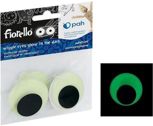 Naklejki oczka samoprzylepne marki Fiorello. Zestaw samoprzylepnych oczek z ruchomymi źrenicami. Świetny materiał do tworzenia ozdób świątecznych, kartek okolicznościowych, scrapbookingu oraz innych prac plastycznych. Model: GR-KE04-40F Oczka fluorescencyjne - świecące w ciemności Średnica: 40 mm Ilość w opakowaniu: 4 szt.