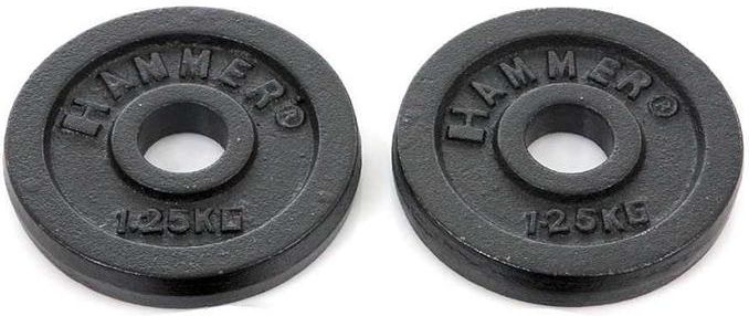 Obciążenie czarne HAMMER 2x1,25kg. Opis: Waga obciażenia: 2x1,25kg Średnica otworu na gfyr: 31 mm Średnica obciążenia: 30 mm Obciążenia sprzedawane są w parach (2szt) Pozostałe informacje: Gwarancja: 24 miesiące Numer katalogowy: 4665