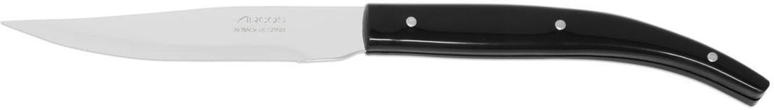 pSTEAK BASIC to seria noży i widelców przeznaczonych do steków i pieczonych mięs. Wyprodukowane w Hiszpanii. Ostrza noży wykonane z innowacyjnej martenzytycznej stali nierdzewnej NITRUM® o podwyższonej twardości oraz odporności na korozję. Kute z jednego kawałka stali. Widelce wykonane ze stali nierdzewnej AISI 304. Noże i widelce są wykonane ze stali walcowanej i połączone z uchwytem nitami. Twardość około 55HRC. Nadają się do mycia w zmywarce Nóż do steków seria STEAK BASIC firmy Arcos jest wykonany z innowacyjnej opatentowanej stali nierdzewnej dzięki której zawdzięcza swoją wysoką twardość i odporność na korozję. Perfekcyjnie poradzi sobie ze stekami i pieczonym mięsem. Uchwyt wykonany z polipropylenu. Delikatnie ząbkowane ostrze./p
