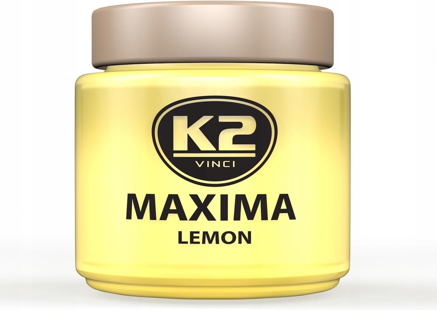 K2 MAXIMA - ZAPACH ODŚWIEŻACZ ŻELOWY - LEMON K2 MAXIMA to uniwersalny zapach do samochodu w formie szklanego słoiczka wypełnionego zapachowym żelem. Długotrwały aromat wypełni każde wnętrze specjalnie wyselekcjonowanymi nutami zapachowymi. Produkt do zastosowania w aucie, domu, biurze czy każdym innym pomieszczeniu. Sposób użycia: Odkręcić wieczko i usunąć zabezpieczenie. Nakręcić wieczko. Umieścić produkt na płaskiej powierzchni w dowolnym pomieszczeniu. W aucie przymocować przyklejoną do słoiczka taśmą i umiejscowić w takim miejscu, aby w przypadku nagłego hamowania , uniemożliwić swobodne przemieszczanie się po kabinie samochodu. Odświeżacz stawiać wyłącznie w pozycji pionowej.