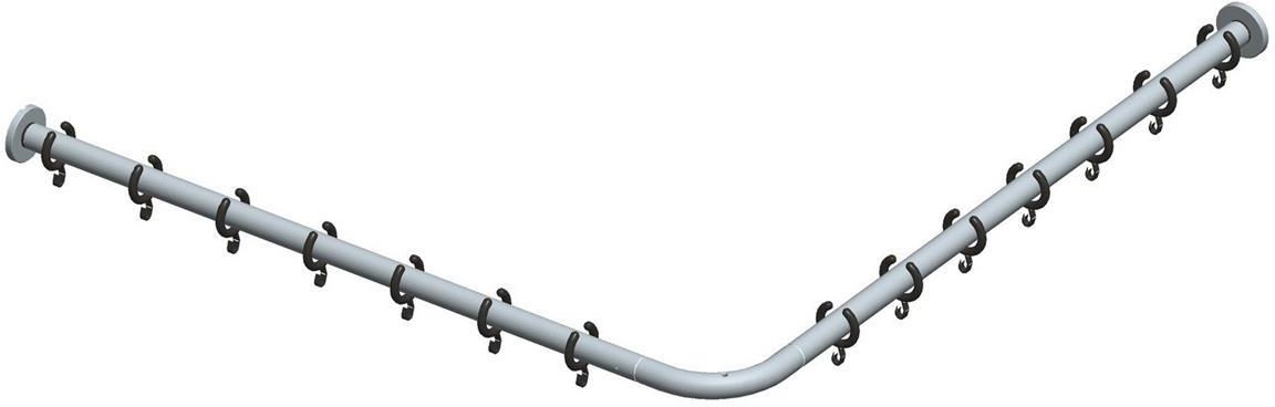 Dla brodzików kwadratowych 1200 x 1200 mm (forma kwadratowa). Kompletny zawiera: 3 x zestaw montażowy naścienny 2 x drążek do zasłon prysznicowych 1100 mm 1 x element łączeniowy 90° dla brodzików kwadratowych 1 x wspornik sufitowy 400 mm 2 x pierścienie na zasłonkę, białe (1 zestaw zawiera 10 sztuk) 1 x element połączeniowy