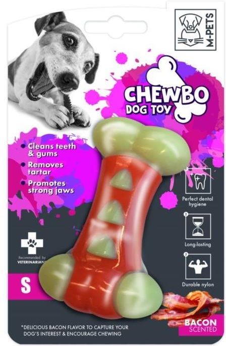 M-Pets CHEWBO TRIBONE - M - Dental Clean - Bekon - Gryzak dla psa Kolor: Pomarańczowy 14 x 6 x 3,5 cm Nylon, TPU Aromat bekonu przyciąga uwagę psa i zachęca do żucia. Chewbo zapewnia stymulację zębów i satysfakcję z żucia Czyści zęby i dziąsła Usuwa kamień nazębny Bardzo wytrzymała Promuje silne szczęki Wskazówki dotyczące użycia zabawki: Pamiętaj o tym, że żadna zabawka nie jest niezniszczalna. Miej na uwadze bezpieczeństwo Twojego psa i nadzoruj zabawę aż będziesz pewien, że jest ona absolutnie bezpieczna. Usuwaj odgryzione elementy zabawki. Zabawkę należy usunąć gdy ostatni jej fragment osiągnie rozmiar możliwy do połknięcia.