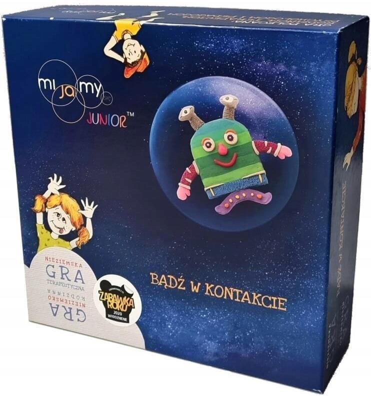 Mijamy się. Junior - nieziemska gra terapeutyczna Gra "Mijamy się Junior" to wspaniała zabawa, która wzmacnia więzi rodzinne, pomaga lepiej poznać się nawzajem i rozwija umiejętność rozpoznawania i nazywania emocji. Jest to niezwykłe narzędzie diagnostyczno-terapeutyczne, które otwiera drzwi do głębszej komunikacji i budowania bliskich relacji. Producent: Mijamy się Data premiery: 2019 ISBN: 5905490855435 Format: 260x260x80 Okładka: pudełko Nr katalogowy: 35056 Wiek: 5+ Liczba graczy: 2-5 Gra "Mijamy się Junior" została stworzona w celu tworzenia wspaniałych relacji i umacniania więzi. Jest polecana dla rodzin, grup znajomych oraz psychologów, pedagogów i terapeutów jako idealne narzędzie wspierające proces terapeutyczno-diagnostyczny. Gra terapeutyczna Gra może być rozgrywana przez 2-5 graczy w wieku od 5 lat. W trakcie gry gracze poznają postać przybysza z kosmosu o imieniu Czułek. Czułek przybywa na naszą planetę z misją poznania ludzi i ich zachowań. Obserwuje ich z zaciekawieniem, mając mnóstwo pytań i wątpliwości. Nie rozumie, co czują ludzie, dlaczego mają domy, przyjaciół, zakładają rodziny, potrafią śmiać się i płakać, krzyczeć, kłócić i przytulać. Czułek musi to wszystko zrozumieć, a my, podczas gry, możemy mu w tym pomóc, odpowiadając na nurtujące go pytania. Cele gry "Mijamy się Junior" Wzmacnianie więzi rodzinnych, umożliwiając spędzanie czasu razem i budowanie silnych relacji. Doskonałe narzędzie do poznawania się nawzajem i tworzenia głębszych więzi między graczami. Rozwijanie umiejętności rozpoznawania i nazewnictwa emocji, co przyczynia się do większej samoświadomości emocjonalnej. Uczenie akceptacji poprzez dostrzeganie i szanowanie różnic w sposobie postrzegania świata, zachowań, uczuć i poglądów innych graczy. Pomoc w uwolnieniu się od napięć, stresu i emocji poprzez ekspresję i wyrażanie stanów psychicznych. Stymulowanie koncentracji, spostrzegawczości i uważności, rozwijając umiejętność skupienia uwagi. Zachęcanie do rozwijania fantazji, kreatywności i pobudzanie aktywności intelektualnej. Dlaczego warto zagrać w "Mijamy się Junior"? Gra ta oferuje wiele korzyści, ponieważ: Pomaga w budowaniu bliskiej relacji z dzieckiem, dostarczając wskazówek i sposobów na tworzenie więzi. Wspomaga rozwiązywanie problemów, które mogą być trudne do skonfrontowania w zwykłej rozmowie. Uczy nas, jak lepiej rozumieć własne i cudze emocje. Otwiera nawet najbardziej zniechęconych i upartych graczy, umożliwiając im wyrażanie siebie. Daje szansę na głębsze poznanie się uczestników i budowanie więzi między nimi. Sprawia, że możemy cieszyć się chwilą spędzoną razem i być w pełnym kontakcie ze sobą. Jest dedykowana dla rodzin, jednocześnie stanowiąc cenne narzędzie diagnostyczno-terapeutyczne. Wniosek jest prosty: gra "Mijamy się Junior" to doskonałe narzędzie do wzmocnienia relacji, rozwijania umiejętności komunikacji emocjonalnej i tworzenia więzi w przyjemny i interaktywny sposób. Elementy gry okrągłe plansze – 6 sztuk, karty zadań z numerami od 1-6 – 165 sztuk, dzwoneczek – 1 sztuka, diamenty – 60 sztuk, kostka do gry – 1 sztuka, Pierwsze opinie graczy "To pierwsza gra, w którą grałam, gdzie uczniowie bez skrępowania, poczucia nacisku, obawy, że ktoś chce czegoś się o nich dowiedzieć, odpowiadają na pytania o uczuciach, emocjach, chętnie podając przykłady ze swojego życia. Różnorodność odpowiedzi jakich dzieci udzielały przeszła moje najśmielsze oczekiwania. Nie było też osoby, która wyszła z zajęć niezadowolona. Chyle czoła za pomysł." opinia pedagoga szkolnego "Uważam, że gra ma walor terapeutyczny, jeśli jeszcze prowadzący to odpowiednio pociągnie to naprawdę można z dzieci wiele wydobyć, a i one mogą sporo dowiedzieć się o sobie samych i o sobie nawzajem, więc jest też walor psychoedukacyjny. Super gra dla małej grupki, ale i indywidualnie też." opinia psychologa dziecięcego "Dziękuję, że mogłam poznać tę grę. Dawno nie spędziłam tak miło czasu z moim dzieckiem. I co najciekawsze, oprócz tego, że dowiedziałam się dużo o swoim synku - co myśli, co czuje, jak postrzega nasz dom i siebie, to ja sama miałam super okazję na chwilę zatrzymać się i odpowiedzieć na pytania, momentami wcale nie takie łatwe. To super gra dla rodzin. Cieszę się, że miałam okazję już w nią zagrać." mama 7 latka Gry Mijamy się to owoc pracy dwóch mam – trenera komunikacji i pedagoga. Od wielu lat obie w różny sposób pomagamy ludziom lepiej się dogadywać z sobą i innymi. Jedna robi to na sali szkoleniowej, druga w gabinecie terapeutycznym. Obie marzyłyśmy, aby każda rodzina miała możliwość podczas wspólnej zabawy budować siłę psychiczną i tworzyć dobre relacje w miłej i bezpiecznej atmosferze. Poznałyśmy się na szkoleniu, które doskonaliło nasze umiejętności korzystania z kart metaforycznych. Okazało się, że obie jesteśmy pasjonatkami gier planszowych, a szczególnie przenoszenia mechanizmów znanych z gier do rzeczywistego świata, aby zmieniać ludzkie zachowania. Podczas pierwszej rozmowy narodziła się wzajemna sympatia i nić porozumienia, co niebawem zaowocowało pomysłem stworzenia wspólnej gry. Tak powstała gra "Mijamy się Junior". Naszą motywacją do dalszego działania są liczne opinie graczy, które mówią o skuteczności naszych gier. A przecież naszym marzeniem było stworzenia narzędzia, które ułatwi ludziom porozumiewanie się z sobą i innymi. Zapraszamy do świata gier MIJAMY się, świata który zmienia zachowania na lepsze. Ela i Danka