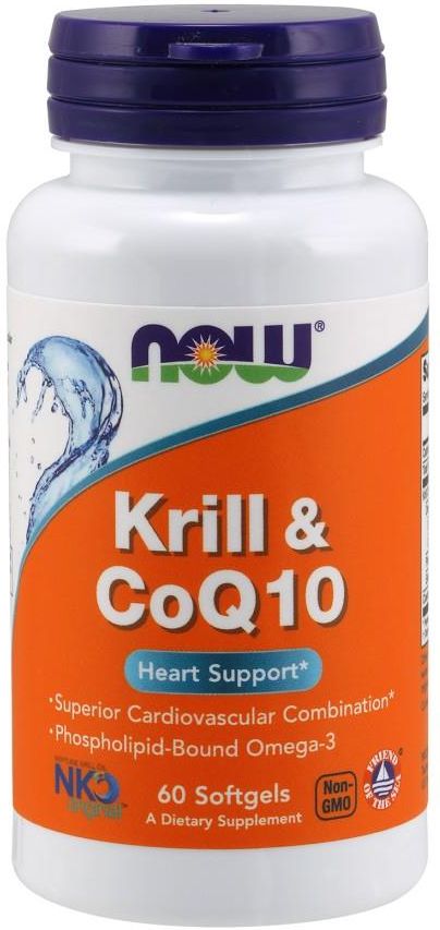 Wsparcie dla serca Doskonałe połączenie dla układu sercowo-naczyniowego Omega-3 związane z fosfolipidami Bez GMO NOW Krill & CoQ10 Softgels łączy w sobie dwa najbardziej znane i skuteczne składniki odżywcze dla zdrowia układu sercowo-naczyniowego w jednym wygodnym suplemencie. CoQ10 jest związkiem witaminopodobnym, który klinicznie wykazał swoją zdolność do wspierania zdrowia serca poprzez wpływ na produkcję energii komórkowej. Olej z kryla zawiera naturalnie występujące niezbędne kwasy tłuszczowe omega-3, które są dobrze znane ze swojej istotnej roli w zdrowiu układu sercowo-naczyniowego. Razem te dwa składniki odżywcze tworzą potężny suplement kombinacji dla wsparcia normalnych, zdrowych, funkcji układu sercowo-naczyniowego. Olej z kryla jest produkowany zgodnie z surowymi standardami kontroli jakości. Jest testowany jako wolny od potencjalnie szkodliwych poziomów zanieczyszczeń, takich jak PCB, dioksyny, rtęć i inne metale ciężkie.