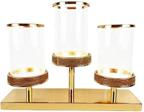 ORIS Świecznik Szklany Lampion Latarenka Zestaw 3 Świeczników Złoty 28x36 KOD: 5901583722356 Świętochłowice