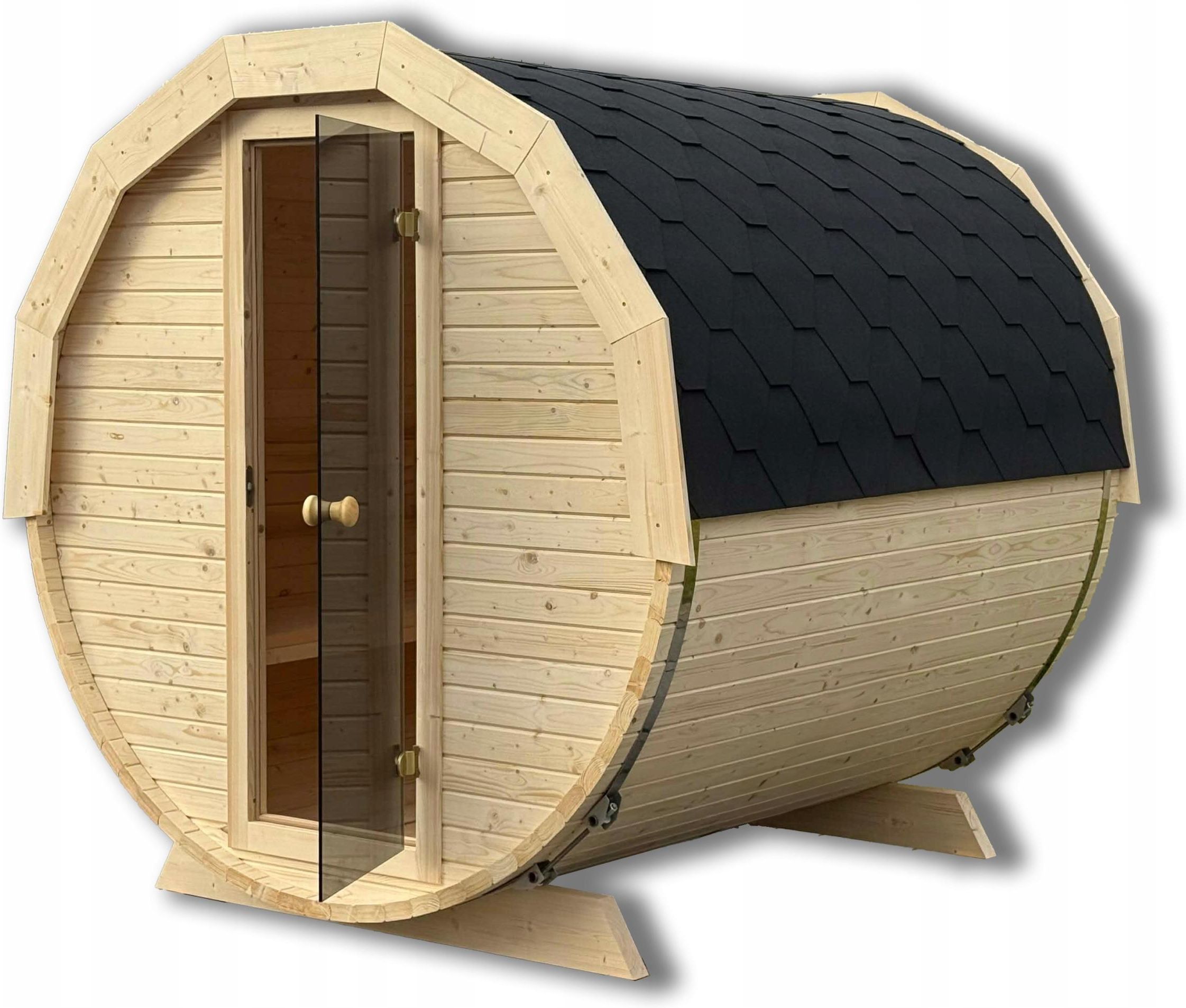 Sauna beczka ogrodowa 200×200 – idealna do Twojego ogrodu - zestaw do samodzielnego montażu Sauna beczka ogrodowa 200×200 cm to idealne rozwiązanie dla każdego, kto marzy o chwili relaksu bez wychodzenia z domu. Dzięki przemyślanej konstrukcji i wysokiej jakości materiałom możesz cieszyć się wyjątkowym komfortem i trwałością przez wiele lat. Co więcej, jej beczkowy kształt sprawia, że wnętrze nagrzewa się szybko i równomiernie, co przekłada się na większy komfort użytkowania. Saunę wykonano z naturalnego skandynawskiego drewna świerkowego klasy C24, które charakteryzuje się wysoką odpornością na warunki atmosferyczne. Ponadto, materiał ten nie tylko dobrze izoluje, ale również pięknie się prezentuje, dzięki czemu sauna staje się ozdobą ogrodu. Nasz produkt cechuje wysoka jakość wykonania i przemyślany design, dopracowany w każdym szczególe - niespotykany u innych dostawców! Specyfikacja – sauna beczka ogrodowa 200×200 cm Wymiary: 200 cm długości × 200 cm średnicy Grubość ścian: 45 mm Materiał: naturalne, suszone drewno świerkowe skandynawskie (klasa C24) Drzwi: grafitowe szkło hartowane o grubości 8 mm Pokrycie dachowe: gont bitumiczny grafitowy Pojemność: do 6 osób Kompletny zestaw – wszystko, czego potrzebujesz W zestawie znajduje się wszystko, co niezbędne do złożenia oraz dokładna instrukcja montażu. Co istotne, montaż jest intuicyjny, dlatego nawet osoby bez doświadczenia poradzą sobie bez problemu, wystarczą minimalne umiejętności techniczne. Baliki na ściany oraz deski startowe i końcowe Ściany przednia i tylna, każda w dwóch połowach Deski wykończeniowe na front i tył Dwie stalowe obejmy i dwa zestawy śrub zaciskowych Dwa legary Materiał na ławeczki i podłogę Szklane drzwi z ościeżnicą, zawiasami i gałką Membrana dachowa oraz gont bitumiczny Wkręty montażowe Instrukcja montażu Dlaczego warto wybrać naszą saunę beczkę 200×200? Szybkie nagrzewanie oraz efektywne utrzymywanie ciepła Naturalne, trwałe drewno i estetyczne wykończenie Relaks, zdrowie i komfort na wyciągnięcie ręki Łatwy montaż i pełne wyposażenie w zestawie Wyprodukowana w 100% w Polsce! Produkt jest dostępny z dostawą na terenie całej Polski. Czas realizacji wynosi od 1 do 2 tygodni. Chętnie doradzimy i pomożemy w wyborze najlepszego rozwiązania. Sauna beczka ogrodowa 200×200 to inwestycja w zdrowie, komfort i codzienny relaks. Zainstaluj ją we własnym ogrodzie i rozpocznij swoją przygodę z saunowaniem jeszcze dziś! Ważne informacje Zestaw nie zawiera impregnatu do pomalowania sauny oraz pieca. Zestawy z piecem oraz akcesoria i wyposażenie znajdziesz na naszych pozostałych aukcjach. Montaż sauny trwa zazwyczaj około 3 dni robocze w 2 osoby, w zależności od umiejętności technicznych. Zestaw do samodzielnego montażu umożliwia budowę sauny w trudno dostępnych miejscach, dodatkowo oszczędzasz na braku konieczności rozładunku HDSem. Rozładunek wykonywany jest wózkiem paletowym lub kiedy to niemożliwe - rozładunek ręczny (około 20 minut).