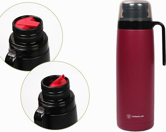 Nowa wersja linii R-Evolution w bordowej odsłonie z nowym, genialnym korkiem. Termolar R-evolution Clickmate 1L to oryginalny, świetnie wykonany termos. Posiada system podwójnych ścianek ze stali nierdzewnej INOX 18/8 oraz zupełnie nowy korek Clickmate z charakterystycznym dzióbkiem zwanym Pico Cebador . Korek Clickmate jest wyjątkowo łatwy i szybki w obsłudze — wystarczy raz go nacisnąć, aby się otworzył i raz, aby go szczelnie zamknąć. Budowa korka pozwala uzyskać jednolity strumień nalewanej wody, co jest szczególnie przydatne przy zalewaniu mate z tzw. "kopczykiem"/ ścianką suszu. Woda leci idealnie, bez żadnego zacinania się. Również właściwości termiczne są zdecydowanie lepsze w porównaniu z chińskim odpowiednikiem. Termos długo utrzymuje zarówno gorącą, jak i lodowatą wodę. Solidnie wykonana rączka z boku ułatwia nalewanie. Może też posłużyć jako zawieszka do paska. Od spodu przyczepiono miękką, okrągłą warstwę ochronną, dzięki czemu można spokojnie odstawiać termos bez charakterystycznego metalicznego dźwięku i obijania spodu. Wieczko u góry to prosty, plastikowy kubeczek. W Brazylii mało kto zamyka termos u góry — raczej stoi on gotowy do użycia w każdym momencie. WYMIARY:Średnica u podstawy: 8,8 cm Wysokość: 29,4 cm Waga: 630 g Pojemność: 1 litr Kolor: bordowy mat / wiśniowo-różana czerwień PERFEKCYJNE TRZYMANIE TEMPERATURYProducent deklaruje utrzymanie zimnej temperatury przez 36 godzin, natomiast gorącej temperatury przez 20 godzin. KONSERWACJA: Dla większej trwałości produktu zalecamy czyszczenie na zewnątrz delikatną szmatką i mydłem. Wewnątrz zalecamy dodanie do butelki dwóch łyżek sody oczyszczonej i gorącej wody. Pozostawić na 12 godzin, a następnie przepłukać butelkę. Pozostaw otwartą butelkę do wyschnięcia. Firma Termolar znana jest w południowoamerykańskim yerbo-świecie jako dostawca najlepszej jakości produktów, a seria R-evolution to najwyższa półka tej brazylijskiej marki. Gwarantowana jakość!