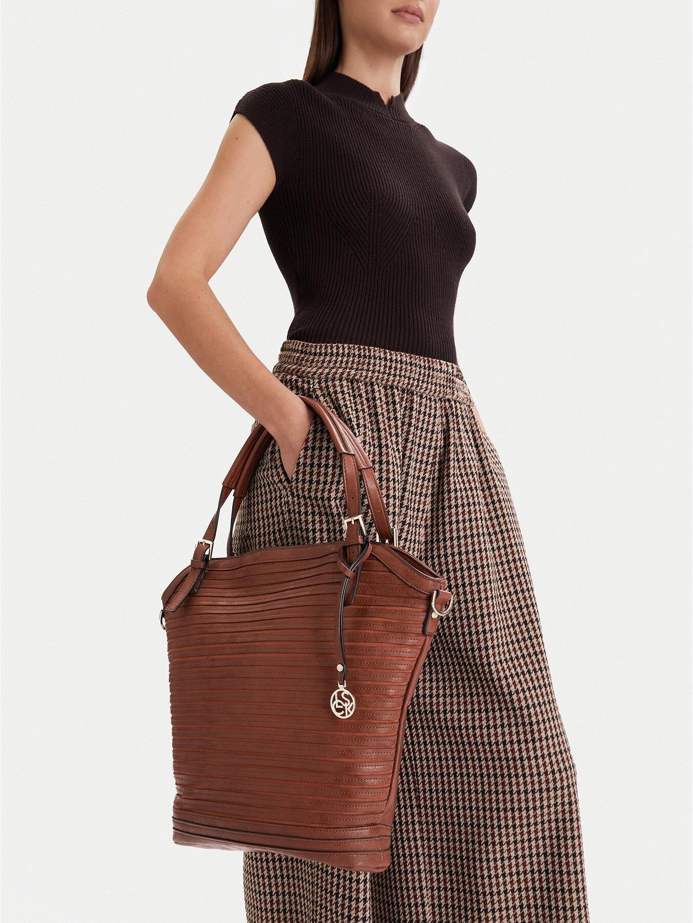 Torebka bucket od marki Lasocki to stylowy wybór dla kobiet, ceniących funkcjonalność i modny design. Wykonana z wysokogatunkowego materiału syntetycznego, wyróżnia się trwałością oraz estetycznym wykończeniem. Jej przestronny rozmiar pozwala na wygodne przechowywanie niezbędnych rzeczy, w tym dokumentów formatu A4, co czyni ją idealnym dodatkiem na co dzień. Ozdobna zawieszka dodaje elegancji, a dopinany pasek i odpinane rączki zapewniają możliwość noszenia jej w dowolny sposób. To połączenie praktyczności i klasycznej estetyki, które podkreśli każdą stylizację.