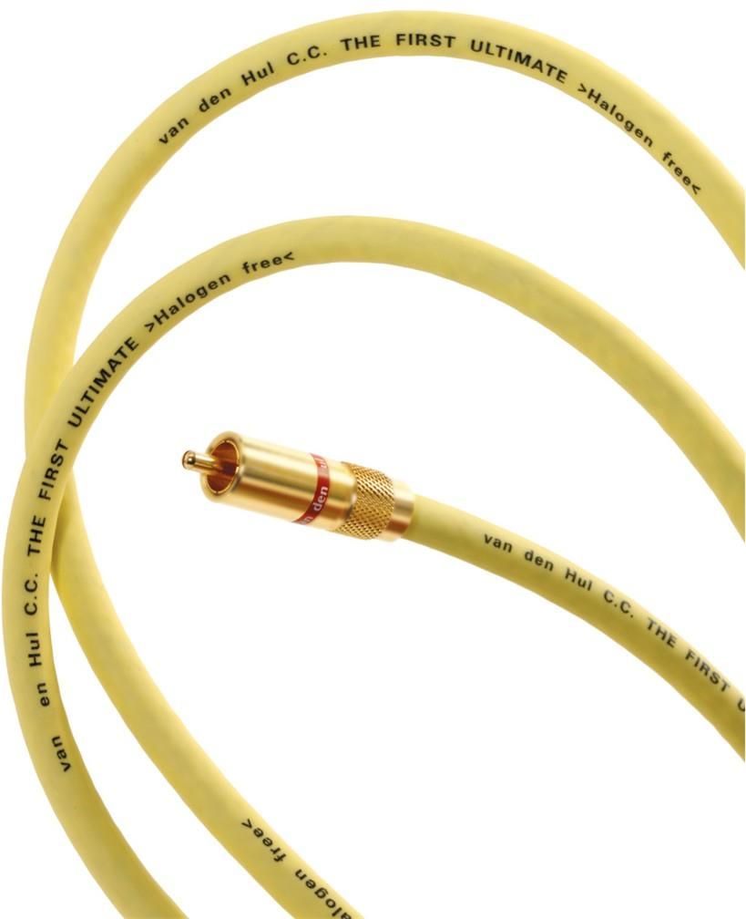 VdH The First Ultimate mk II - interkonekt RCA, długość 1m, podana cena za parę. The First Ultimate Mk II jest lepszą wersją pierwszego kabla wykonanego w technologii bezmetalicznej. Zamiast metalu wykorzystano tu Linear Structure Carbon, czyli włókna węglowe. Oznacza to, że nie tylko doskonały dźwięk dziś, ale taki sam po wsze czasy. Jest absolutnie wolny od efektu starzenia, co jest jedną z zalet węgla.The First Ultimate Mk II jest chroniony z zewnątrz przez koszulkę Hulliflex w kolorze żółtym. The First Ultimate Mk II występuje wyłącznie w wersji RCA, gdyż jest kablem koaksjalnym.The First Ultimate Mk II to trzykrotnie bardziej ekranowana wersja naszego wysoko cenionego, klasycznego The FIRST reg; (pierwszej na świecie bezmetalowej połączeniówki) i został zaprojektowany w celu osiągniecia najwyższej jakości, niezbalansowanego sygnału liniowego oraz cyfrowego SPDIF (patrz sekcja kabli cyfrowych). Wyposażony w 4 pozłacane złącza Cinch - 8.0 (RCA).