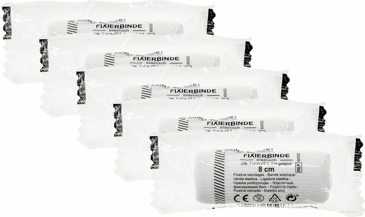 Zestaw 5 opasek stosowanych do podtrzymywania opatrunków, okładów i kompresów. Wykonane z bandażu przepuszczającego powietrze, zapewniającego higienę i nie powodującego podrażnień skóry. Produkt spełnia wymagania normy DIN 61634.