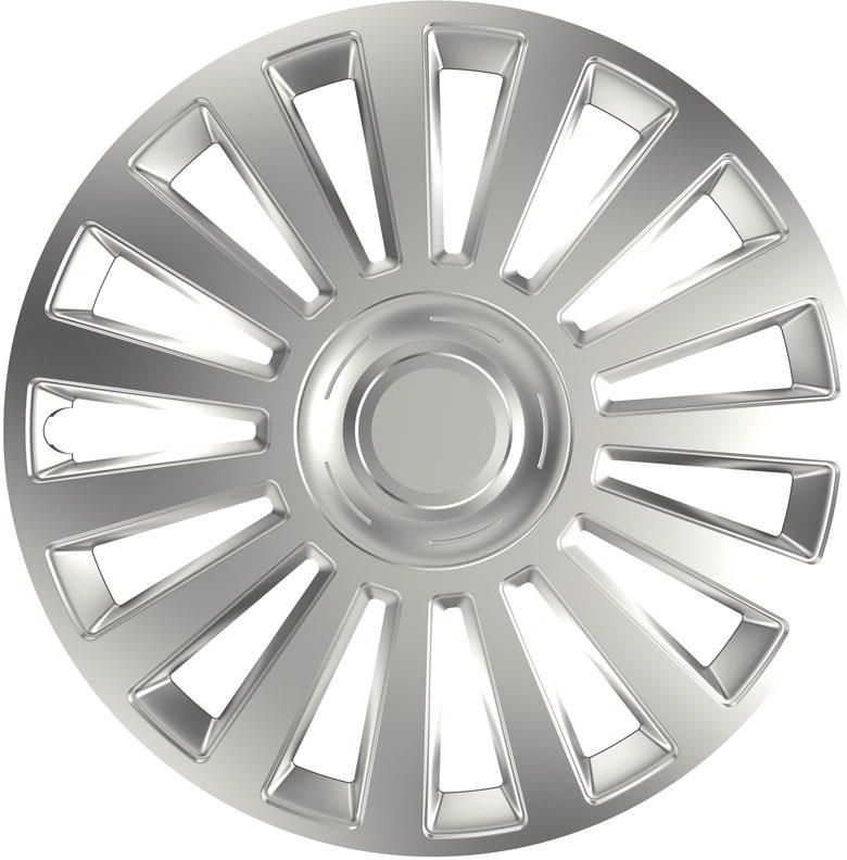 Kołpaki pasują do większości modeli samochodów wyposażonych w stalowe felgi. Dzięki możliwości regulacji obręczy można idealnie dopasować kołpak do felgi. Nie nadają się jedynie do felg wypukłych ZALETY: WYSOKA JAKOŚĆ zastosowanego tworzywa ABS WYTRZYMAŁOŚĆ – odporne na uderzenia i zmienne warunki atmosferyczne BEZPIECZEŃSTWO – zatrzaski z tworzywa sztucznego nie powodują uszkodzenia felg ŁATWOŚĆ MONTAŻU – bez użycia dodatkowych narzędzi EFEKTOWNY WYGLĄD Aby wybrać prawidłowy rozmiar kołpaka należy sprawdzić średnicę felgi – informację taką można odczytać na oponie. Liczba następująca po symbolu „R” oznacza średnicę opony. MONTAŻ: Zdejmij zbędne pokrywy z felgi i oczyść jej zewnętrzną stronę Ustaw stalowy pierścień rozprężny w pozycji z wcięciem pod wentyl i wciśnij go w gniazda łapek zaciskowych. Przyłóż kołpak do felgi, tak aby miejsce na wentyl w kołpaku pokrywało się z wentylem w feldze. Nałóż kołpak na dolną część felgi, podeprzyj kolanem, górne dwie łapki zaciskowe przyciśnij (uchyl) palcami od góry w dół kołpaka i jednocześnie wciśnij kołpak do wewnątrz rantu felgi. Dociśnij na całym obwodzie felgi.