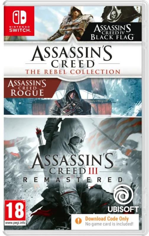 PRZEDSPRZEDAŻ! UWAGA! DATA PREMIERY / TERMIN WYSYŁKI MOŻE ULEC ZMIANIE! Poznaj serię Assassins Creed w pełnej krasie z pakietem czterech epickich przygód na Nintendo Switch: ASSASSIN’S CREED III REMASTERED & LIBERATION W Assassins Creed III grasz jako Connor, asasyn, który przysiągł bronić swojego ludu i walczyć o wolność. Odkrywaj ogromny, realistyczny otwarty świat, polując na wrogów zagrażających niepodległości amerykańskich kolonii. Zawiera także wszystkie jednoosobowe DLC do oryginalnej gry: Misje Benedicta Arnolda Pakiet ukrytych tajemnic Tyrania króla Waszyngtona Co więcej, w Assassins Creed Liberation możesz zagrać jako Aveline, asasynka, która wyruszy z tętniących życiem ulic Nowego Orleanu i dotrze na bagna nawiedzane przez voodoo i do starożytnych ruin Majów. ASSASSIN’S CREED: THE REBEL COLLECTION W Assassins Creed IV: Black Flag wyrusz do złotej epoki piractwa jako Edward Kenway, budzący grozę piracki kapitan, zamieszany w wojnę pomiędzy asasynami a templariuszami. Weź udział w bitwach morskich i zyskaj szacunek takich legend jak Czarnobrody. W Assassins Creed Rogue wyrusz na niebezpieczną wyprawę po Ameryce Północnej i chłodnych wodach Atlantyku. Po raz pierwszy w historii serii rozegraj fabułę z perspektywy templariusza. Pośród chaosu wojny siedmioletniej, niegdyś lojalny asasyn staje się bezwzględnym łowcą swoich byłych braci.