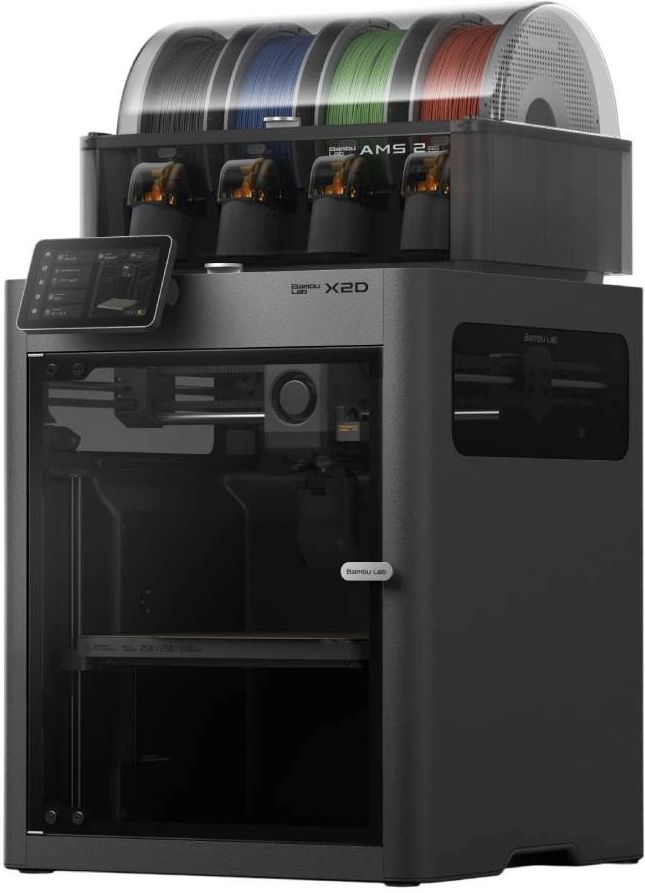 Bambu Lab X2D to nowoczesna drukarka 3D typu CoreXY wykorzystująca podwójną głowicę i oferująca pole robocze o wymiarach do 256 x 256 x 260 mm. Drukarka została wyposażona w aktywnie grzaną komorę do 65°C, dysze osiągające temperaturę do 300°C oraz trzystopniowy system filtracji powietrza. Dzięki automatycznej kalibracji, inteligentnym czujnikom i dopracowanemu ekosystemowi Bambu Lab drukarka gwarantuje stabilną, powtarzalną i wygodną pracę już od pierwszego użycia. Wersja Combo zawiera system AMS 2 Pro umożliwiający obsługę wielu filamentów jednocześnie. Bambu Lab X2D Combo to zaawansowana drukarka 3D, stworzona z myślą o użytkownikach, którzy oczekują wysokiej jakości wydruków bez konieczności czasochłonnej konfiguracji. Zastosowanie systemu CoreXY, podwójnej głowicy, zamkniętej konstrukcji oraz aktywnego podgrzewania komory do 65°C zapewnia stabilne warunki pracy i wysoką precyzję druku. X2D przeprowadza kalibrację przed każdym wydrukiem, wykorzystując 31 czujników, które na bieżąco kontrolują przebieg procesu. Maksymalna temperatura dyszy wynosząca do 300°C, pole robocze o wymiarach do 256 x 256 x 260 mm oraz zaawansowany system filtracji (G3 + HEPA H12 + filtr węglowy) sprawiają, że drukarka sprawdza się zarówno w zastosowaniach hobbystycznych, jak i półprofesjonalnych. W zestawie znajduje się również system AMS 2 Pro, który umożliwia druk wielokolorowy oraz wspiera proces suszenia filamentu Konstrukcja CoreXY i wydajność pracy Bambu Lab X2D Drukarka 3D Bambu Lab X2D wykorzystuje zaawansowany system ruchu CoreXY, który zapewnia wysoką precyzję, płynność działania oraz stabilność nawet przy dużych prędkościach druku. Dzięki temu możliwe jest uzyskanie dokładnych detali oraz powtarzalnych rezultatów w kolejnych wydrukach. Dodatkowo zastosowanie nowoczesnych komponentów mechanicznych i napędu PMSM z próbkowaniem 20 kHz przekłada się na wysoką kulturę pracy i niezawodność urządzenia. System filtracji i komfort użytkowania drukarki 3D Bambu Lab X2D została wyposażona w zaawansowany system filtracji powietrza, który składa się z filtra wstępnego G3, filtra HEPA H12 oraz filtra z aktywnego węgla kokosowego. Takie rozwiązanie skutecznie redukuje emisję cząstek oraz nieprzyjemnych zapachów powstających podczas druku. W połączeniu z zamkniętą obudową pozwala to na komfortowe użytkowanie drukarki w przestrzeniach domowych, biurowych i pracowniach projektowych. Precyzja i kontrola procesu druku w Bambu Lab X2D Drukarka wykorzystuje 31 czujników, które na bieżąco monitorują przebieg drukowania, kontrolując między innymi podawanie filamentu, temperaturę oraz bezpieczeństwo pracy. Dzięki temu X2D może automatycznie wykrywać nieprawidłowości, takie jak brak materiału czy jego splątanie, i reagować w czasie rzeczywistym. System kompensuje wpływ zużycia dyszy, drobnych osadów czy zmian właściwości filamentu, dzięki czemu jakość druku pozostaje powtarzalna. Przed każdym wydrukiem drukarka samoczynnie weryfikuje kluczowe ustawienia i dostosowuje je do bieżących warunków pracy. W trakcie drukowania X2D stale nadzoruje przebieg procesu, kontroluje filament, parametry termiczne i bezpieczeństwo, dzięki czemu możesz skupić się na efekcie końcowym, a nie na rozwiązywaniu problemów technicznych. Dodatkowo kamera Live View oraz kamera głowicy wspierają wykrywanie problemów, takich jak spaghetti, zalepienie dyszy czy zator w obszarze czyszczenia. Opcjonalny system Vision Encoder pozwala osiągnąć dokładność nawet do 50 µm, co czyni X2D narzędziem odpowiednim do bardziej wymagających zastosowań. Podwójna głowica w drukarce 3D Bambu Lab X2D Zastosowanie dwóch dysz otwiera znacznie większe możliwości w zakresie projektowania i wytwarzania modeli 3D. Drukarka może pracować z dwoma materiałami jednocześnie, co ułatwia tworzenie złożonych modeli, elementów wielokolorowych oraz podpór z innego filamentu. W praktyce oznacza to prostsze usuwanie struktur pomocniczych, lepszą jakość powierzchni oraz krótszy czas obróbki gotowego wydruku po zakończeniu pracy. Kompatybilność materiałów i stabilne środowisko druku Bambu Lab X2D obsługuje szeroki zakres popularnych i technicznych materiałów do druku 3D. Bardzo dobrze współpracuje z filamentami PLA, PETG, TPU, PVA, ABS, ASA, PA, PC, PET oraz kompozytami wzmacnianymi włóknem węglowym lub szklanym, a ich stabilne przetwarzanie wspierają dysze o temperaturze do 300°C, stół grzewczy do 120°C i grzana komora do 65°C. Pole robocze wynoszące do 256 x 256 x 260 mm pozwala realizować zarówno większe modele, jak i precyzyjne elementy, a zamknięta konstrukcja poprawia warunki druku z materiałów podatnych na skurcz. AMS 2 Pro - druk wielomateriałowy i suszenie filamentu W wersji X2D Combo z systemem AMS 2 Pro otrzymujesz pełną funkcjonalność druku wielokolorowego oraz możliwość aktywnego suszenia filamentu. Jeden moduł pozwala na jednoczesną obsługę do 4 szpul, co znacząco zwiększa możliwości projektowe i produkcyjne. Zastosowany system aktywnej wentylacji oraz automatycznego obracania szpul umożliwia równomierne i efektywne suszenie materiału do temperatury 65°C, co przekłada się na wyższą jakość wydruków oraz ograniczenie problemów wynikających z wilgoci w filamentach. Dodatkowo AMS 2 Pro wykorzystuje technologię RFID, dzięki której automatycznie identyfikuje filamenty Bambu Lab i samodzielnie dopasowuje optymalne parametry druku oraz suszenia, bez konieczności ingerencji użytkownika. Oprogramowanie i aplikacje w ekosystemie Bambu Lab Drukarka 3D Bambu Lab X2D jest częścią rozbudowanego ekosystemu marki, który łączy sprzęt, oprogramowanie, materiały oraz społeczność użytkowników. Do dyspozycji użytkownika pozostają między innymi Bambu Studio, aplikacja mobilna Bambu Handy oraz platforma MakerWorld. Takie połączenie ułatwia przy