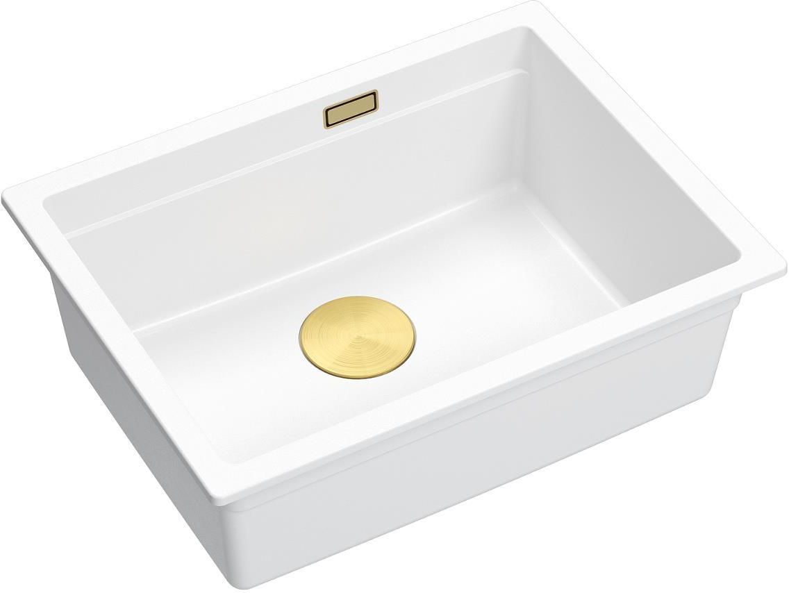 Quadron Kuchenny Zlewozmywak Jednokomorowy LOGAN 100 Granitowy Podwieszany Wymiary: 56 x 45 cm Kolor: Biały/ Snow White + Złoto PVD Zestaw wyposażony jest w: zlewozmywak granitowy 56 x 45 cm syfon z przyściennym systemem SAVE SPACE, dzięki któremu zaoszczędzisz dużo miejsca w szafce pod …