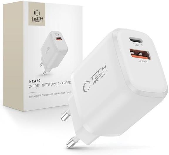 TECH-PROTECT NCA20 2-PORT NETWORK CHARGER PD 20W / QC3.0 WHITE Kompaktowa ładowarka sieciowa Tech-Protect NCA20 2-Port to uniwersalne rozwiązanie do szybkiego ładowania dwóch urządzeń jednocześnie. Wyposażona w porty USB-A i USB-C, umożliwia ładowanie szerokiej gamy urządzeń elektronicznych - od …