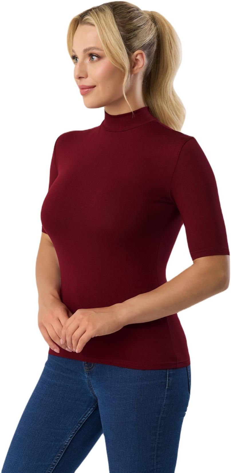 Bluzka damska półgolf z krótkim rękawem LAYLA bordowa Szadek