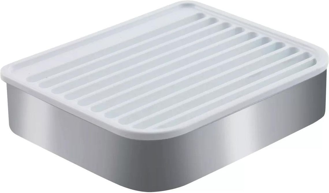 Mydelniczka stalowa Charakterystyka: •Długość [mm]: 111 •Głębokość [mm]: 90 •Szerokość [mm]: 110 •Wysokość [mm]: 25 •Wysokość [mm]: 25