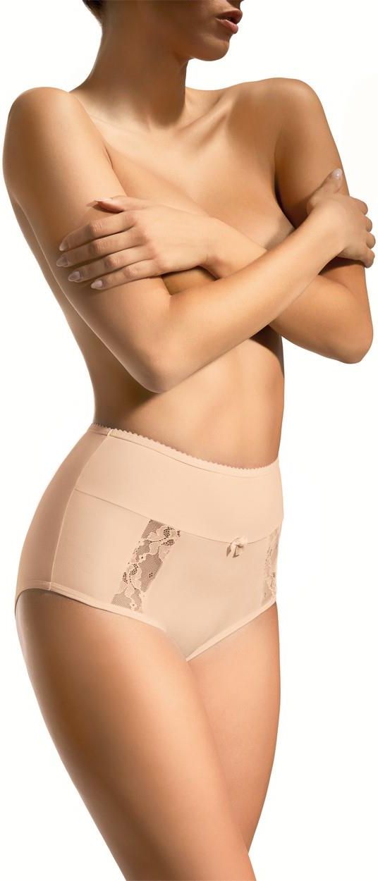 Figi damskie z wysokim stanem i koronką Babell kod 005 beżowe Szadek