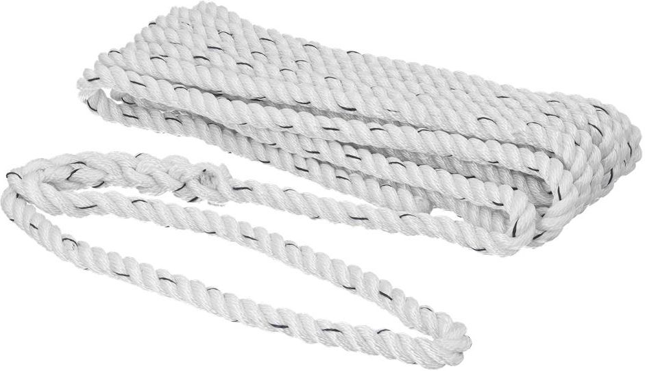 Lina cumownicza z zaplecioną pętlą do bezpiecznego cumowania łodzi. Z trzech splotek z odpornego na promieniowanie UV poliestru.