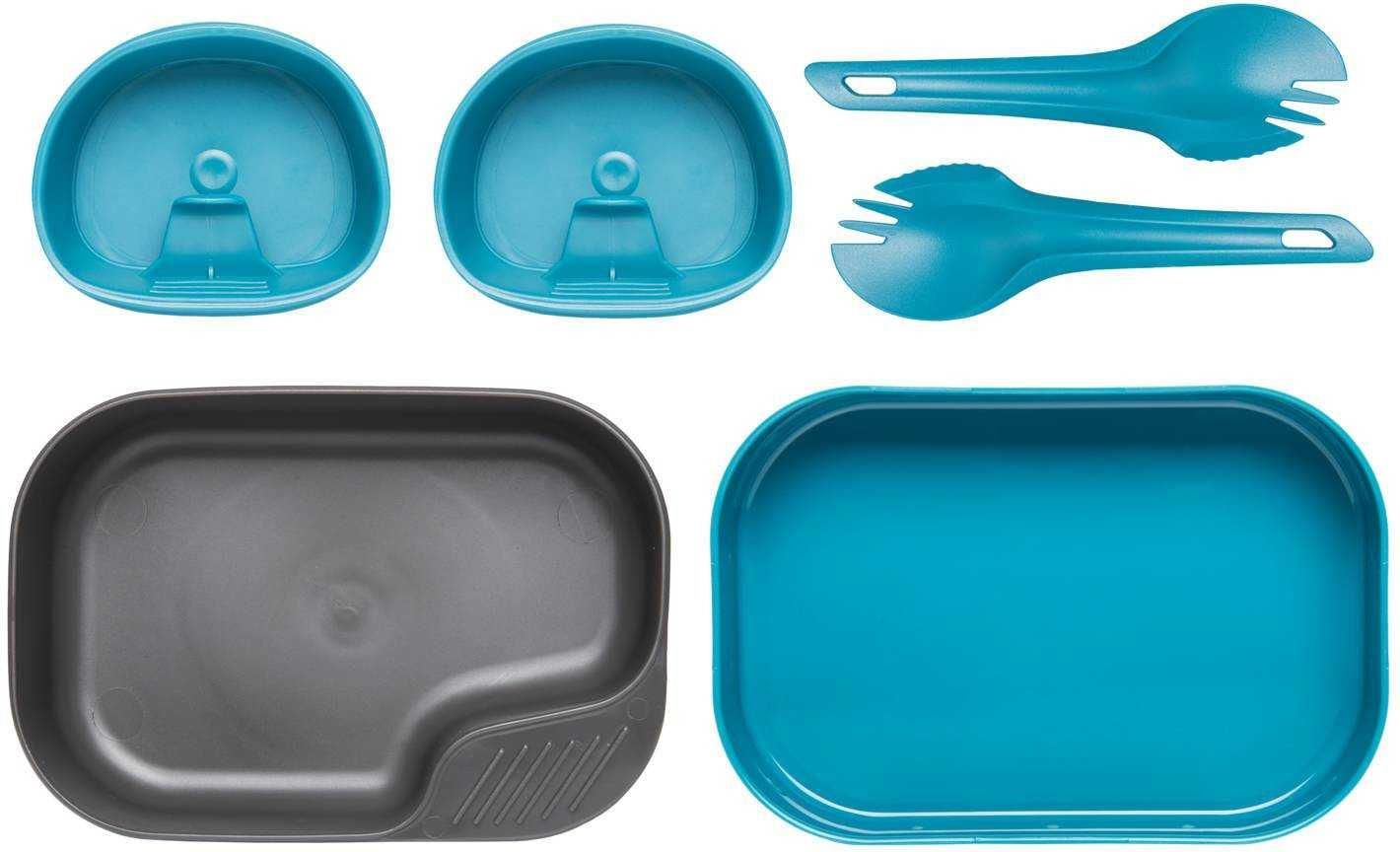 Zestaw naczyń biwakowych Camp-A-Box® Duo Light Green wyprodukowany przez szwedzką firmę Wildo®. Idealny na kemping lub górską wędrówkę, do szkoły lub pracy. Stanowi doskonałe uzupełnienie zestawu surwiwalowego. Wykonany został z lekkiego i nietoksycznego tworzywa. W skład zestawu wchodzi: talerz z pokrywką 2 x kubek Fold-A-Cup® (250 ml) 2x Spork - widelec, nóż i łyżka w jednym Kubki Fold-A-Cup® wykonane są z lekkiego i trwałego materiału termoplastycznego. Ich składana do wewnątrz konstrukcja sprawia, że podczas transportu z kubków nie będzie kapać, nawet gdy nie zostaną one odpowiednio wysuszone po opróżnieniu. Wymiary po spakowaniu: 190 x 130 x 50 mm Waga: 190 g Produkt wolny od bisfenolu (BPA-free) Kolor: niebieski, ciemnoszary