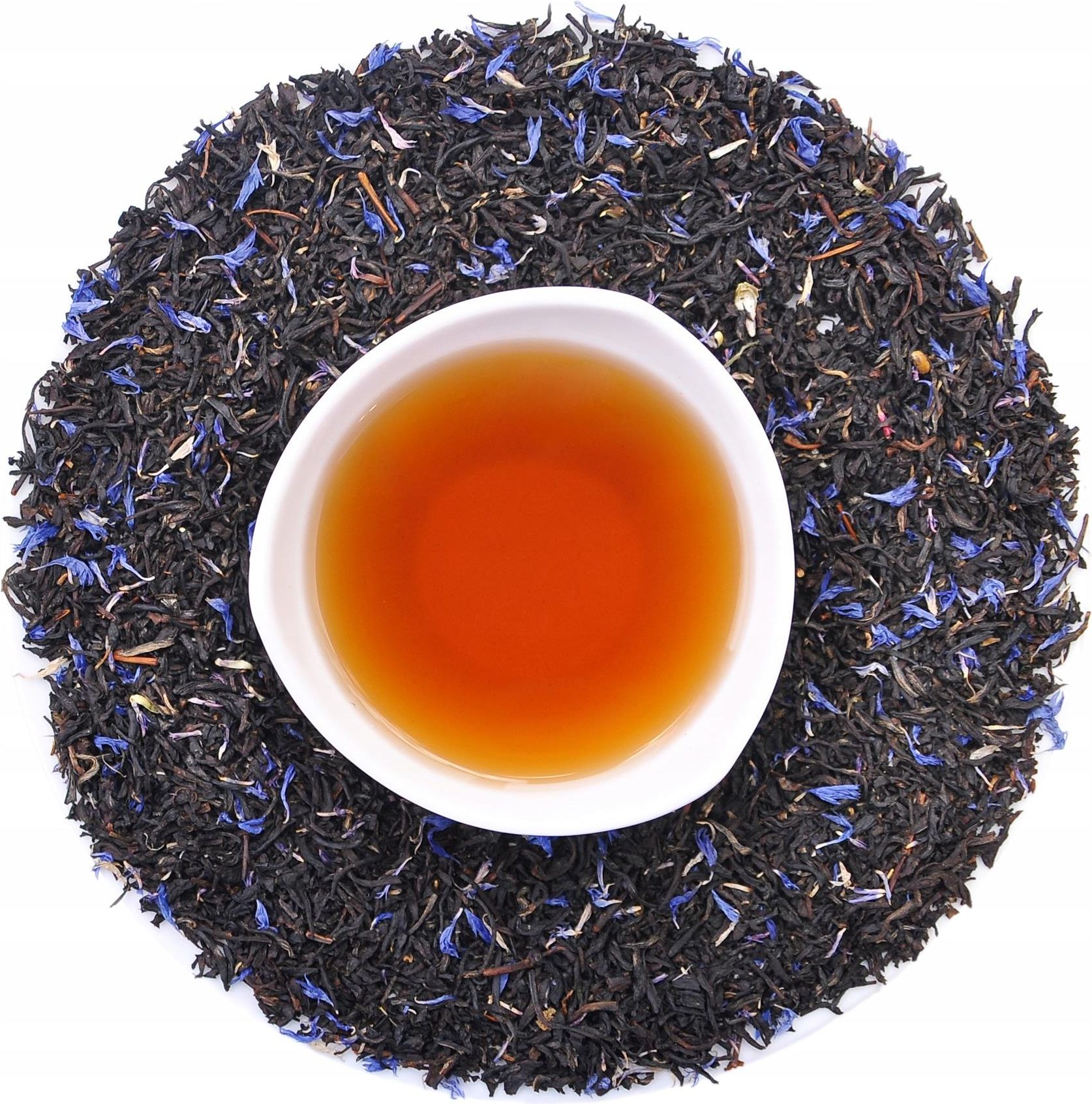 EARL GREY BLUE na bazie czarnej herbaty cejlońskiej Earl Grey Blue to wyśmienity napar o doskonałym smaku i wyraźnym zapachu. Herbata określana mianem „złota w filiżance”. W przypadku Cejlonu (Sri Lanka) herbatę uprawia się praktycznie od poziomu morza, aż po szczyty centralnie położonego masywu górskiego. Najlepsze gatunki pochodzą z upraw wysokogórskich usytuowanych powyżej 1200 m n.p.m. Herbata Ceylon pochodzi z ekologicznych wysoko położonej plantacji w południowej części wyspy. KRAJ POCHODZENIA: Sri Lanka SKŁAD: czarna herbata Ceylon OP, bławatek, aromat. BUKIET OPIS: Czarna herbata Ceylońska ma działanie rozgrzewające i pobudzające dlatego polecana jest każdego zimnego dnia. Napar niezwykle szlachetny w smaku i zapach o złocisto-bursztynowej barwie. Klasyczny smak Earl Grey podkręcony błękitnym delikatnym nagietkiem - coś pysznego. Klasyczne połączenie bergamotki z herbatą sprawdza się najlepiej. Dlatego polecam każdemu smakoszowi dobrej herbaty. Parzenie: Wsyp jedną łyżeczkę suszu do filiżanki i w zależności od tego, czy chcesz delikatny, łagodny smak czy bardziej wyrazisty i gorzki, parz w wodzie o temperaturze 90 do 95 (im wyższa temperatura tym mocniejszy i bardziej gorzki smak) przez 2 do 5 minut. Nie zwlekaj. Zamów już dziś. Herbata czarna EARL GREY BLUE, tak jak wszystkie inne nasze produkty, pakowana jest w torebkę ze szczelnym zgrzewem. Przykładowe opakowania znajdziesz w galerii zdjęć (z okienkiem lub bez w zależności od dostępności). Oznaczona etykietą informacyjną z nazwą, składem, sposobem parzenia i datą przydatności. Dlatego możesz być pewien naszych produktów. Dostępna w gramaturach 50 g, 100 g, 250 g 500 g, 1 kg Życzymy smacznego!!!