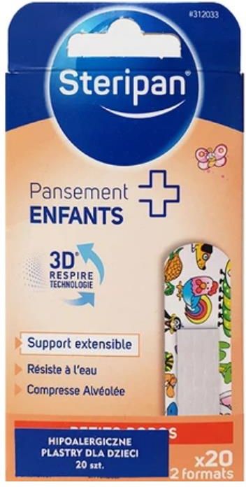Kolorowe plastry, które sprawią że dzieci szybko zapomną o drobnych ranach i skaleczeniach. Plastry są wodoodporne i elastyczne , nie odklejają się i dopasowują do kształtu ciała i dopasowują do kształtu ciała. Dzięki technologii kompresu 3D rana jest sucha a plaster pozwala skórze na swobodne oddychanie. Kompres posiada silne właściwości wchłaniające. Opakowanie zawiera 20 hipoalergicznych plastrów dla dzieci (2 rozmiary). Rozmiary i rodzaje plastrów w opakowaniu 10 sztuk 25 x 72mm 10 sztuk 38 x 72mm Sposób użycia Dokładnie oczyścić i osuszyć miejsce powstawania pęcherzy lub drobnych ran. Nakleić plaster tak aby opatrunek zakrywał pęcherz lub drobną ranę. Zaleca się codzienną zmianę plastra na nowy.