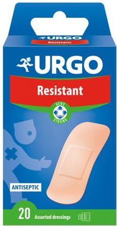 Podstawowe informacje o URGO Resistant Wytrzymały opatrunek antyseptyczny URGO Resistant to przycięty opatrunek do ochrony powierzchownych ran. Działanie i właściwości URGO Resistant Wytrzymały opatrunek antyseptyczny występuje w różnych rozmiarach, aby można było go łatwo dopasować do urazu i odpowiednio chronić ranę. Z wytrzymałej tkaniny mikro-perforowane podłoże opatrunku pozwala skórze oddychać.Opatrunek nieprzywierający, nie przykleja się do rany.Hipoalergiczny, antyseptyczny. Zastosowanie / wskazania URGO Resistant Wytrzymały opatrunek antyseptyczny do codziennej ochrony ran powierzchniowych. Stosowanie URGO Resistant Wytrzymały opatrunek antyseptyczny Przycięty opatrunek: oczyścić, zdezynfekować, przemyć i starannie osuszyć ranę oraz jej okolice. Ostrożnie nałożyć opatrunek, starannie wygładzając krawędzie. Zmieniać opatrunek co najmniej 2 razy dziennie i po każdej kąpieli. Działania niepożądane / skutki uboczne Jak każdy opatrunek, produkt ten może powodować reakcje skórne, takie jak stan zapalny, podrażnienie lub ból przy usuwaniu opatrunku. Aby obniżyć ryzyko infekcji lub reakcji skórnych: Należy ściśle przestrzegać instrukcji stosowania. Nie stosować ponownie użytego wcześniej opatrunku. Nie stosować na rany dłuższe lub szersze niż opatrunek. Nie stosować na oczy, delikatną i cienką skórę oraz błonę śluzową. Nie stosować po upływie terminu ważności. Nie stosować uszkodzonego produktu. Ostrzeżenia i środki ostrożności Nieodpowiedni dla dzieci poniżej 1. roku życia. W przypadku ciała obcego w ranie, znacznego krwawienia, ugryzienia, użądlenia, zranienia ostrym i/lub zabrudzonym przedmiotem lub jeśli w ciągu 6 dni nie nastąpiła poprawa, należy skontaktować się z farmaceutą lub lekarzem. Przechowywanie Produkt należy przechowywać w miejscu niedostępnym dla dzieci. Kartonik nadaje się do recyklingu, a zużyte opatrunki należy wyrzucić do pojemnika na odpady. Opakowanie 20 przyciętych opatrunków 6 sztuk 20 × 40 mm 10 sztuk 19 × 72 mm 4 sztuki 34 × 72 mm To jest wyrób medyczny. Używaj go zgodnie z instrukcją używania lub etykietą.