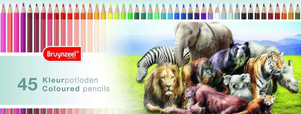 Bruynzeel Animal kredki "Zwierzęta" będą długo służyły małym artystom w przedszkolu i w szkole zestaw zawiera 45 kolorów są dopasowane do dziecięcych rączek, wygodnie się je temperuje i - co ważne - nie łamią się bardzo dobrej jakości, miękkie, dobrze temperujące się kredki opakowanie: estetyczne metalowe zamykane pudełko produkt holenderskiej firmy Bruynzeel