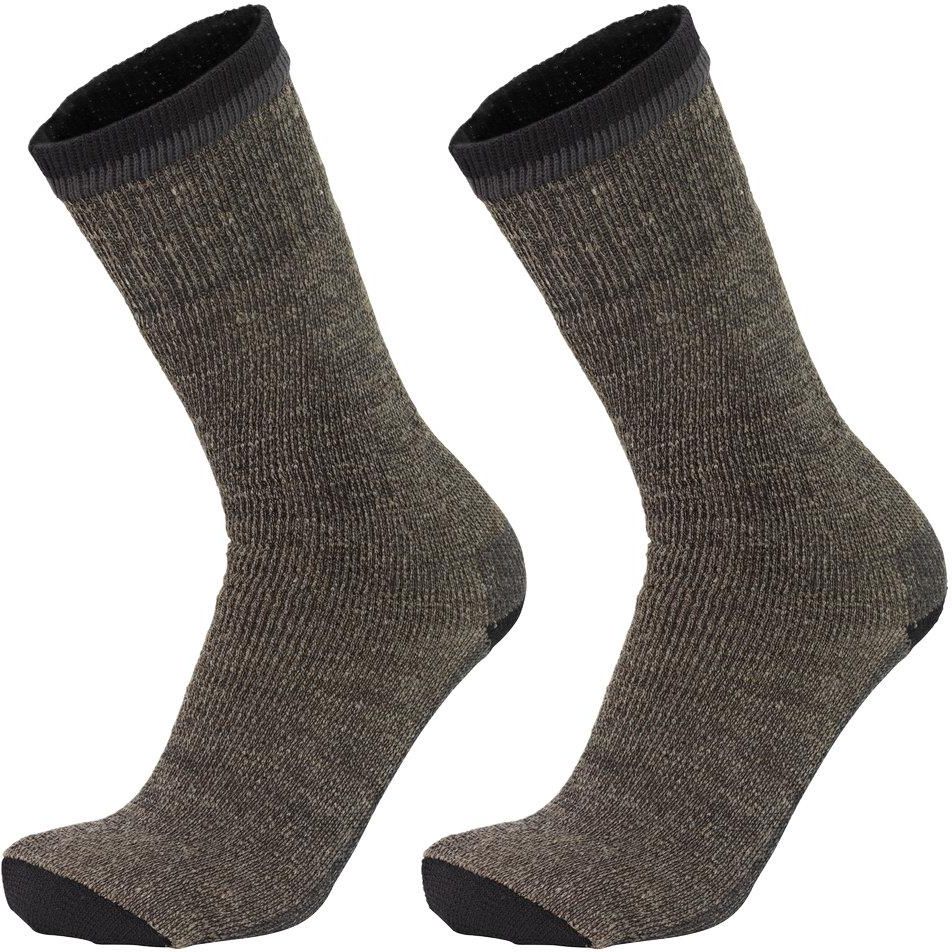 Wyjatkowo mocne skarpety welniane dobrze przystosowane do zimnych i trudnych warunków. Wytrzymale skarpety ze wzmocnieniami na pietach i przy palcach. dzieki czemu doskonale nadaja sie do wysokich butów uzywanych np. przy pracach lesnych lub rolnych. Miekkie. elastyczne sciagacze utrzymuja skarpety na swoim miejscu.