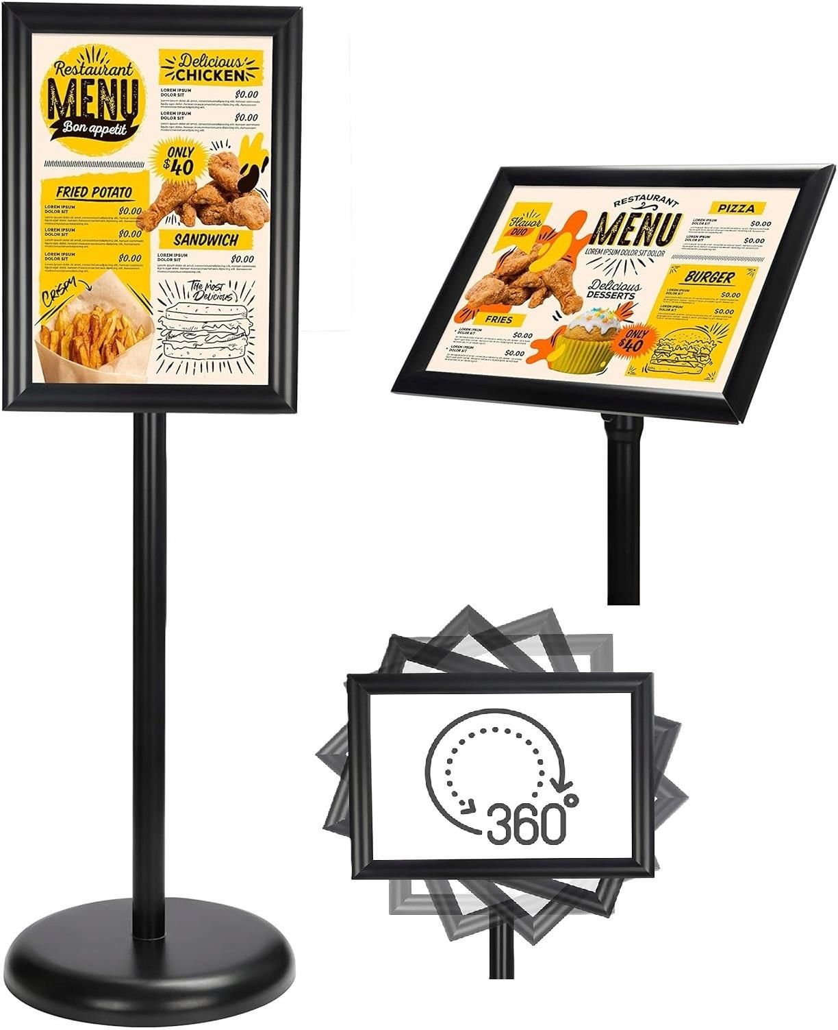 STOJAK REKLAMOWY INFORMACYJNY 27x18 A4 RAMA ALUMINIUM CZARNA 360 OBRACANY Szadek
