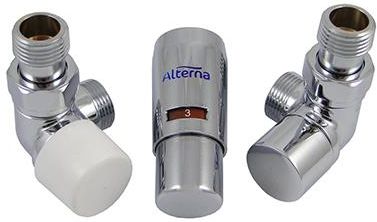 Alterna Zestaw Zaworów Grzejnikowych Elegant Mini Z Głowicą Na Zacisk Chrom Osiowy ALTN914674 Szamotuły
