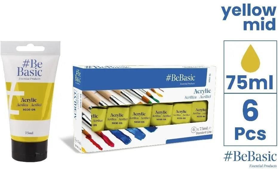 Bebasic Farba Akrylowa Czysty Żółty 75Ml 6Szt Szamotuły