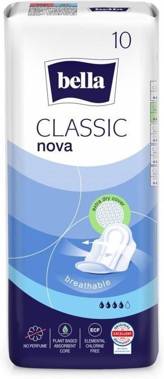 Opis Klasyczne podpaski higieniczne Bella Classic Nova o tradycyjnej grubości zapewniają poczucie świeżości i komfortu w każdej sytuacji. Cechy produktu chłonność: 4/5 kształt: regularny grubość: 7 mm pokrycie: siateczka z osłonkami bocznymi oddychające bezzapachowe bez zawartości lateksu testowane dermatologicznie