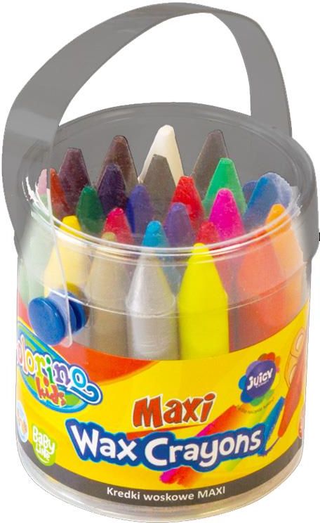 Maxi kredki woskowe w wygodnej przeźroczystej tubie. Kredki mają ok. 7cm długości, ich grubość sprawia, że idealnie mieszcza sie w raczkach malucha. Mnóstwo intensywnych kolorów i odcieni pozwoli namalować nawet najbardziej wymagające prace i sprawi że będą wyjątkowe. Ilość sztuk w opakowaniu: 24