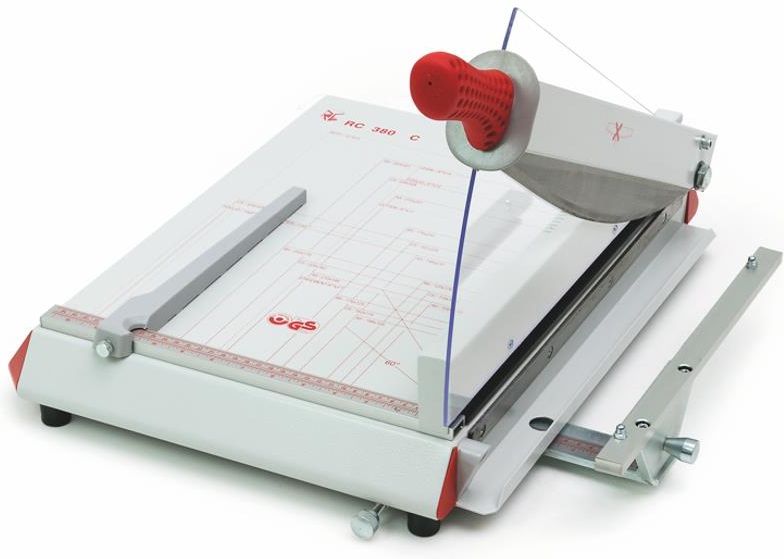 Gilotyna RC 380 C: Obcinarka biurowa RC 380 C z dociskiem automatycznym, tnie bez wysiłku jednorazowo nawet do 50 arkuszy! Bezpieczeństwo i wygoda pracy zostały potraktowane przez producenta absolutnie bezkompromisowo. – długość cięcia 380 mm – znakomicie radzą sobie z szerokimi wydrukami komputerowymi – jednorazowo przecina do 50 kartek 70g – wyposażona w przezroczystą osłonę noża, zapewniającą bezpieczeństwo pracy – ergonomiczny uchwyt przeciwpoślizgowy – na blatach roboczych znajdują się standardowe szablony formatów – regulowany ogranicznik formatów – wymiar blatu: 430x420mm – obcinarka RC 380 C jest wyposażona w dodatkowy zewnętrzny ogranicznik formatu.
