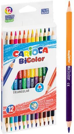 Grand Kredki Ołówkowe Dwustronne Trójkątne Bicolor Carioca 24 Kolory 12Szt. Szamotuły