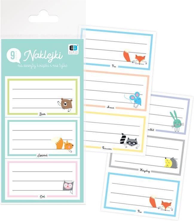 Kolorowe naklejki na zeszyty Interdruk B&B. Naklejki z serii produktów stworzonej specjalnie z myślą o najmłodszych. Wzór: mix Rozmiar: 40 x 75 mm Nadrukowana liniatura (3 wersy) ułatwiająca opisywanie 9 sztuk naklejek na zeszyty z sympatycznymi zwierzakami.