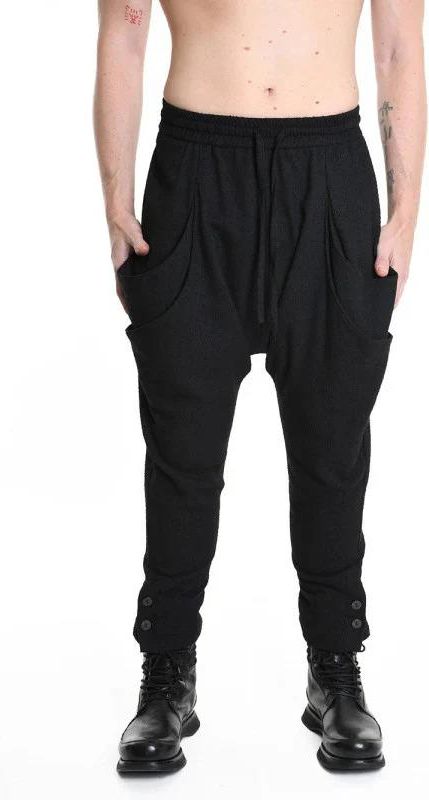 Luźny fason zapewnia nie tylko swobodę ruchu, ale także modny i niezobowiązujący wygląd, który doskonale wpisuje się w najnowsze trendy, pozwalając Ci czuć się komfortowo w każdej sytuacji. Z obniżonym krokiem, te spodnie dodają nieco streetwearowego charakteru, oferując jednocześnie wygodę i styl, który idealnie sprawdzi się zarówno w codziennych, jak i bardziej casualowych stylizacjach. Z elastycznym pasem, dodatkowo regulowanym sznurkiem, te spodnie zapewniają idealne dopasowanie do każdej sylwetki, co czyni je niezwykle praktycznym wyborem na każdą okazję. Z podwójnymi kieszeniami, które nie tylko zwiększają funkcjonalność, ale również dodają nowoczesnego akcentu, te spodnie łączą w sobie praktyczność z modnym wyglądem. Nogawki zapinane na metalowe guziki dodają elegancji i oryginalności, umożliwiając swobodne dostosowanie stylu do własnych potrzeb i preferencji. Wykonane z wysokiej jakości tkaniny typu boucle, te spodnie oferują nie tylko wyjątkowy komfort, ale także trwałość i luksusowy wygląd, który przyciąga uwagę. Wyprodukowane we Włoszech, co gwarantuje nie tylko doskonałą jakość wykonania, ale także prestiż i styl, które są synonimem włoskiej mody.