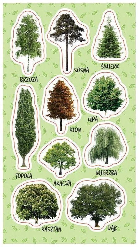 Zestaw naklejek do ozdoby zeszytów, albumów, listów, pocztówek - 10 drzew z opisami. Polecane do szkół. Wymiary: 150x80x20 mm Grupa wiekowa: 3+ Opakowanie: folia
