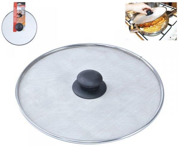 Pokrywka ochronna do smażenia 29 cm Praktyczna pokrywa do patelni, która chroni przed pryskaniem oleju podczas smażenia. Można jej również użyć jako sitko do przelewania oleju. Kod id : 13162 Długość produktu: 29 cm Materiał: metal Szerokość: 29 cm Wysokość: 3,5 cm Waga (g): 150 Kolor dominujący: srebrny Logistyka Logistyka długość(cm): 29 Logistyka szerokość(cm): 29 Logistyka wysokość(cm): 3,5 Waga gabarytowa (g): 420.5 Waga gabarytowa w gramach: 420.5 PRAKTYCZNA - Pokrywka ochronna o średnicy 29 cm do patelni lub garnka. Zapobiega rozpryskiwaniu gorącego tłuszczu podczas smażenia. SOLIDNA - Wykonana z gęstego metalowego sitka w srebrnym kolorze, a uchwyt wykonany z wytrzymałego tworzywa w pomarańczowym kolorze. Pokrywka jest solidna i wytrzymała. Odpowiednio użytkowana posłuży długie lata. UNIWERSALNA - Pasuje do naczyń o średnicy do 29 cm. Możemy wykorzystać ją również jako sitko do przelewania oleju lub innego płynu, co ułatwia oddzielenie cieczy od potrawy. Sprawdzi zarówno podczas smażenia mięsa, ryb, jak i warzyw. PORĘCZNA - Wyposażona w antypoślizgowy uchwyt, co zapewni wygodne i bezpieczne użytkowanie. Pozwoli przenosić pokrywkę bez ryzyka poparzeń. FUNKCJONALNA - Dzięki niej zachowamy porządek na kuchence i blatach podczas gotowania. Wystarczy położyć ją na patelni, aby uniknąć rozpryskiwania się oleju lub sosu. Pokrywka ochronna zapobiegająca pryskaniu podczas gotowania lub smażenia w kuchni. Dzięki niej unikniemy zabrudzeń na powierzchni kuchenki oraz ubraniach spowodowanych rozpryskiwaniem np. oleju. Dodatkowo, zapobiega nieprzyjemnym i niebezpiecznym poparzeniom. Wygodna w użytkowaniu. Solidnie wykonana. Dzięki płaskim rozmiarom, możemy ją w łatwy sposób przechować. Oryginalny produkt czeskiej marki Orion. Wyprodukowano zgodnie z europejskimi standardami.