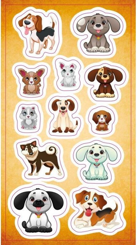 Zestaw naklejek do ozdoby zeszytów, albumów, listów, pocztówek ... 12 wesołych psiaków. Wymiary: 149x82 mm Grupa wiekowa: 3+ Opakowanie: folia