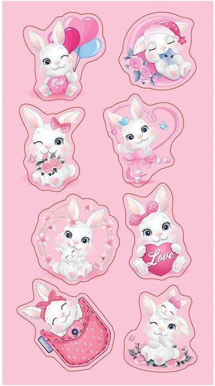 Zestaw naklejek do ozdoby zeszytów, albumów, listów, pocztówek - 8 \"słitaśnych\" zajączków. Wymiary: 150x80x20 mm Grupa wiekowa: 3+ Opakowanie: folia