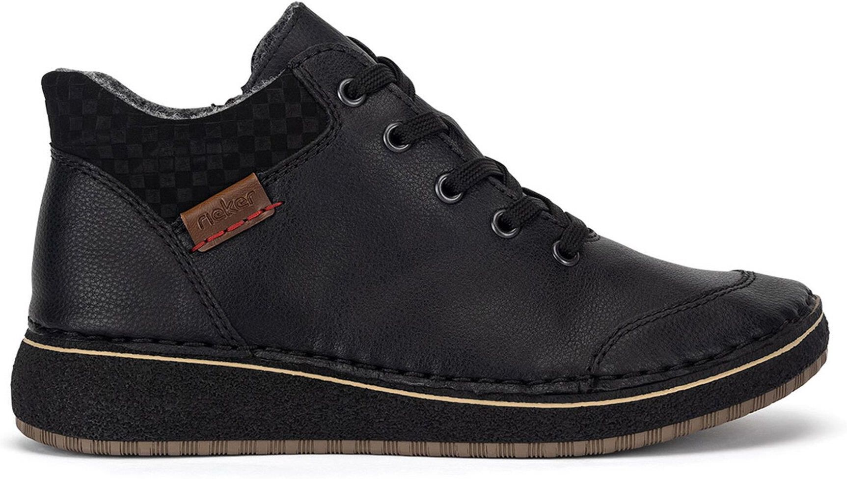 Trzewiki od marki Rieker to idealne połączenie stylu i komfortu dla każdej kobiety. Wykonane z wysokiej jakości skóry, prezentują się elegancko i są niezwykle trwałe. Ich klasyczny, czarny kolor sprawia, że będą pasować do wielu stylizacji. Buty posiadają płaską podeszwę, co gwarantuje wygodę ich noszenia przez cały dzień. Niska cholewka idealnie dopasowuje się do stopy, a suwak sprawia, że są łatwe do zakładania i zdejmowania. Casualowy styl tych trzewików sprawia, że są świetnym wyborem na co dzień, łącząc w sobie funkcjonalność i modny wygląd. Idealne do miasta i na dłuższe spacery! Od ponad stu lat marka Rieker oferuje niezwykle komfortowe i trwałe obuwie, które powstaje z myślą o zdrowiu stóp. Dzięki wieloletniemu doświadczeniu w produkcji obuwia, ta niemiecka marka doskonale potrafi łączyć wygodę ze stylem, dlatego w ofercie znajdziesz buty w modnych, oryginalnych fasonach, które każdemu przypadną do gustu. Buty Rieker tworzone są z materiałów wysokiej jakości, przez co odznaczają się wyjątkową elastycznością i trwałością, ale też lekkością. Ponadto w obuwiu stosuje się szerszą formę zapewniającą odpowiednią stabilizację stopy, specjalne podeszwy absorbujące wstrząsy oraz odciążające stawy i kręgosłup, a także wyjmowane wkładki z pianki Memory Foam, która idealnie dopasowuje się do kształtu stóp. To doskonałe produkty dla tych, którzy ponad wszystko cenią sobie komfort. Przekonaj się!