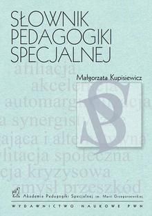 Słownik zawiera hasła z zakresu:- diagnozy i stymulacji rozwoju dzieci z różnymi rodzajami i stopniem niepełnosprawności;- patologii i profilaktyki rozwoju; - edukacji, rehabilitacji, resocjalizacji oraz terapii medycznej i psychologiczno-pedagogicznej osób niepełnosprawnych;- społecznego funkcjonowania osób niepełnosprawnych w różnych środowiskach życia; - regulacji prawnych dotyczących tych osób,a także biogramy prekursorów i twórców pedagogiki specjalnej.Obowiązkowa lektura nie tylko dla studentów i pracowników naukowych, ale także dla wszystkich mających kontakt i pracujących z osobami niepełnosprawnymi.Małgorzata Kupisiewicz - dr hab., prof. Akademii Pedagogiki Specjalnej im. M. Grzegorzewskiej, kierownik Zakładu Surdopedagogiki Wydziału Nauk Pedagogicznych APS.Każdego niemal roku wzrasta liczba osób niepełnosprawnych w różnym wieku dotkniętych w różnym stopniu i różnymi rodzajami niepełnosprawności. Z danych Światowej Organizacji Zdrowia z przełomu XX i XXI wieku wynika, że na kuli ziemskiej liczba niepełnosprawnych wynosiła około 500 milionów ludzi, a w Polsce obejmowała około 12% ogółu ludności, w tym ponad 3% dzieci w wieku do 14 roku życia. Znaczy to, że ponad 4 miliony osób wymagało u nas i nadal wymaga – trwale lub okresowo – różnych form i zakresów diagnozy, profilaktyki, rehabilitacji oraz terapii o charakterze opiekuńczym, leczniczym i psychopedagogicznym, a także wsparcia socjalnego i prawnego. (…) Znaczny udział w realizacji tego celu ma pedagogika specjalna.[fragment Przedmowy] Spis treści Przedmowa 5Słownik 9Czołowi polscy pedagodzy specjalni437