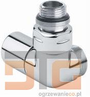 Zawór trójosiowy regulacyjny kątowy PRAWY Biały Wyprodukowano dla polskiej firmy TERMA we włoskiej firmie CARLO POLETTI Kod produktu: TGZRBI004 Maks. ciśnienie pracy: 10 bar. Zakres temperatury pracy: 5÷100°C. Wersja prawa w tym produkcie oznacza, że zasilanie grzejnika jest z prawej strony, tam montujemy zawór i tam odbywa się regulacja - czyli wygodna jest na lewą rękę. Oś uchwytu regulacji jest równoległa do ściany pod grzejnikiem. Dzięki temu zawór nie wystaje poza jego obrys. Zawór regulacyjny działa jak zwykły zawór - gdzie za pomocą pokrętła regulujemy przepływ wody w grzejniku i przez to mamy wpływ na uzyskiwane ciepło. Zawory POLETTI białe nie całe są w tym kolorze, bo śrubunki są chromowane. Dlatego dobrze będą wyglądać oczywiście adaptery białe, ale estetycznie pasują też chromowane. Od strony przyłączenia do grzejnika zawór ma gwint zewnętrzny 1/2". W celu podłączenia do instalacji potrzebne są złączki serii TGAST: można zastosować białe - ADAPTER 24x19 X 15 na miedź BIAŁA lub ADAPTER 24x19 X 16 PEX BIAŁA. Złączki takie (adaptery): na miedź o numerze katalogowym TGABI003 , na alu-pex o numerze TGABI001 - wystawiamy na innych aukcjach. można także chromowane - ADAPTER 24x19 X 15 na miedź CHROM albo ADAPTER 24x19 X 16 PEX CHROM lub ADAPTER 24x19 X 1/2" na Stal CHROM gwint wewnętrzny. Złączki takie (adaptery): na miedź o numerze katalogowym TGACR003 , na alu-pex o numerze TGACR019 , na stal o numerze TGACR007 - wystawiamy na innych aukcjach. Dla podniesienia estetyki całości, możemy zaproponować dodatkowo jeden z wystawianych na innych aukcjach zestawów: Maskujący Pojedynczy Chrom CARLO POLETTI : osłona pojedyncza, maskownica - komplet o kodzie produktu TGPCR001 HERZ : osłona pojedyncza, maskownica - komplet o numerze katalogowym S 6822 00 ( S682200 ) Maskujący Pojedynczy Biały CARLO POLETTI : osłona pojedyncza, maskownica - komplet o kodzie produktu TGPBI001