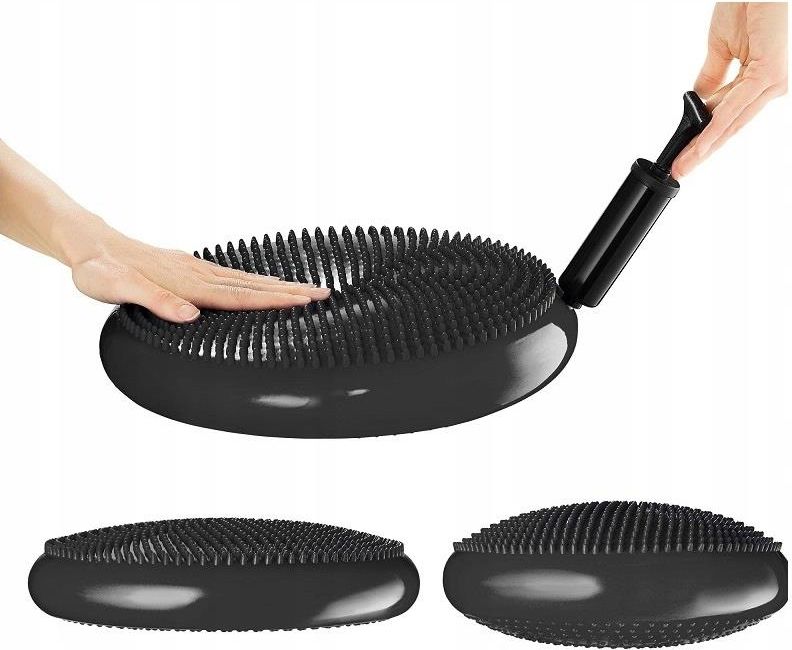 Poduszka sensomotoryczna z pompką Nowoczesny wygląd Sprawdzona konstrukcja, urządzenie sprawdzi się w każdych warunkach Idealny dla osób w każdym wieku Udźwignie aż 120 kg! Idealny na prezent, oraz na inne okazje Podnosi bilans ciała oraz siłę mięśniową Poprawia równowagę, koncentrację, krążenie krwi Lekka, dzięki temu można ją zabrać ze sobą w podróż Wymusza siedzenie w prawidłowej pozycji, dzięki temu niweluje bóle pleców Dzięki wypełnieniu powietrze, elastyczna, dostosowuje się doi danej części ciała Kolor: czarny Idealny na prezent Funkcja masażu Parametry Średnica: 33 cm Wysokość: 9 cm Pompka ręczna w zestawie Waga:1 kg Maksymalne obciążenie: 120 kg Kolor: czarny Materiał: Winyl Poduszka sensoryczna poprawie nie tylko posturę ciała, ale także koordynację oraz równowagę. Ponadto powoduje, że możemy swobodnie się odprężyć i zaznać chwili relaksu, dzięki jej masującym właściwościom. Ćwiczenia jakie możemy wykonać na poduszce: Balansowanie na siedząco lub na jednej nodze Poprawienie krążenia ciała, dzięki specjalnym wypustkom Przysiady Masaż stóp, co powoduje odprężenie Wypad bokiem Skakanie Zestaw zawiera Poduszkę sensoryczną Pompkę Oryginalne opakowanie