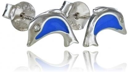 Srebrne Rodowane Kolczyki Delfinki Delfiny z Cyrkonią ! IDŚDELFINKI190321 Szczawnica